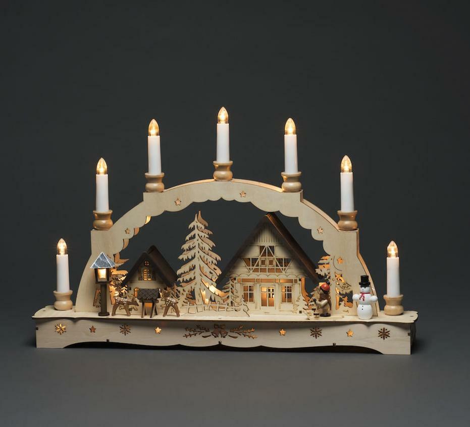 Adventní svícen 3254-100, dřevěný přírodní vyřezávaný, motiv HÁJOVNA
