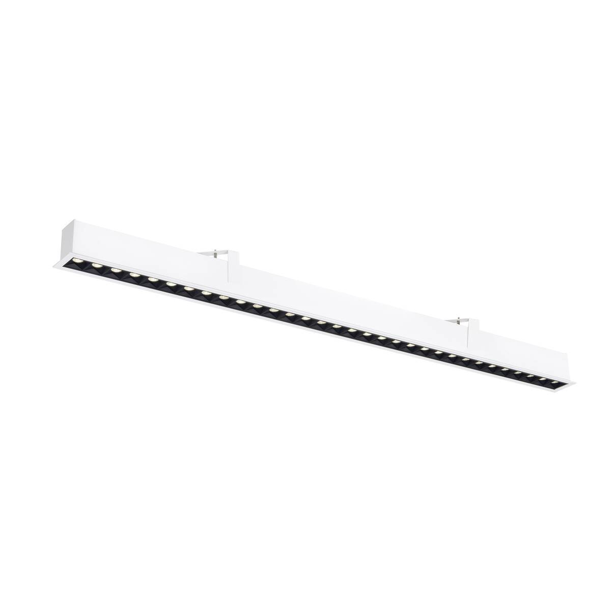 Stropní vestavné svítidlo GLENOS PRO značky SLV představuje moderní řešení pro sofistikované kancelářské i komerční prostory, kde je vyžadováno efektivní a zároveň vizuálně komfortní osvětlení. Toto lineární svítidlo o délce 1310 mm s úhlem svícení 75° je vybaveno vysoce kvalitním LED modulem s životností až 100 000 hodin a světelným tokem 3900 lm. Díky indexu podání barev CRI > 90 zajišťuje věrné podání barev, což je klíčové pro pracovní prostředí.