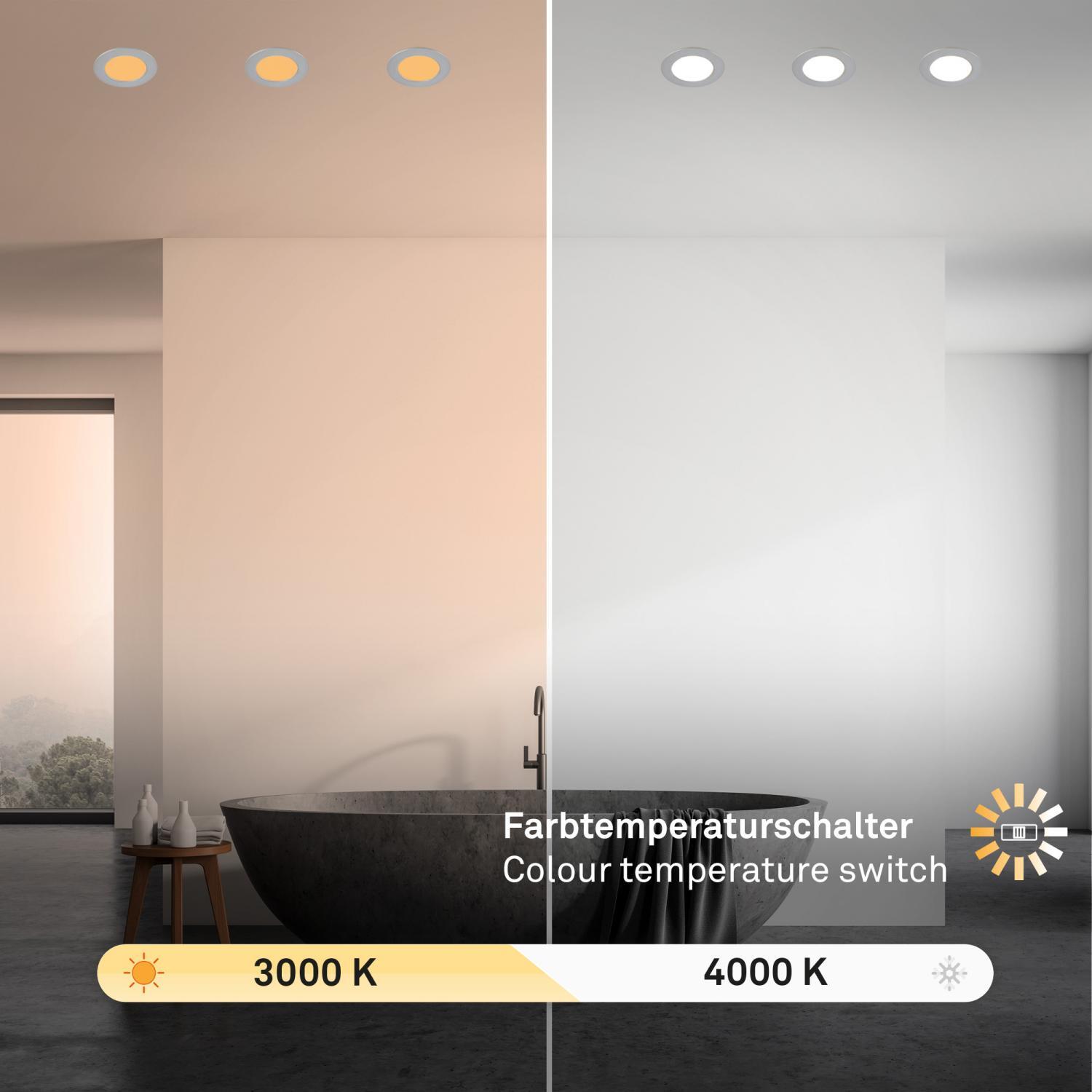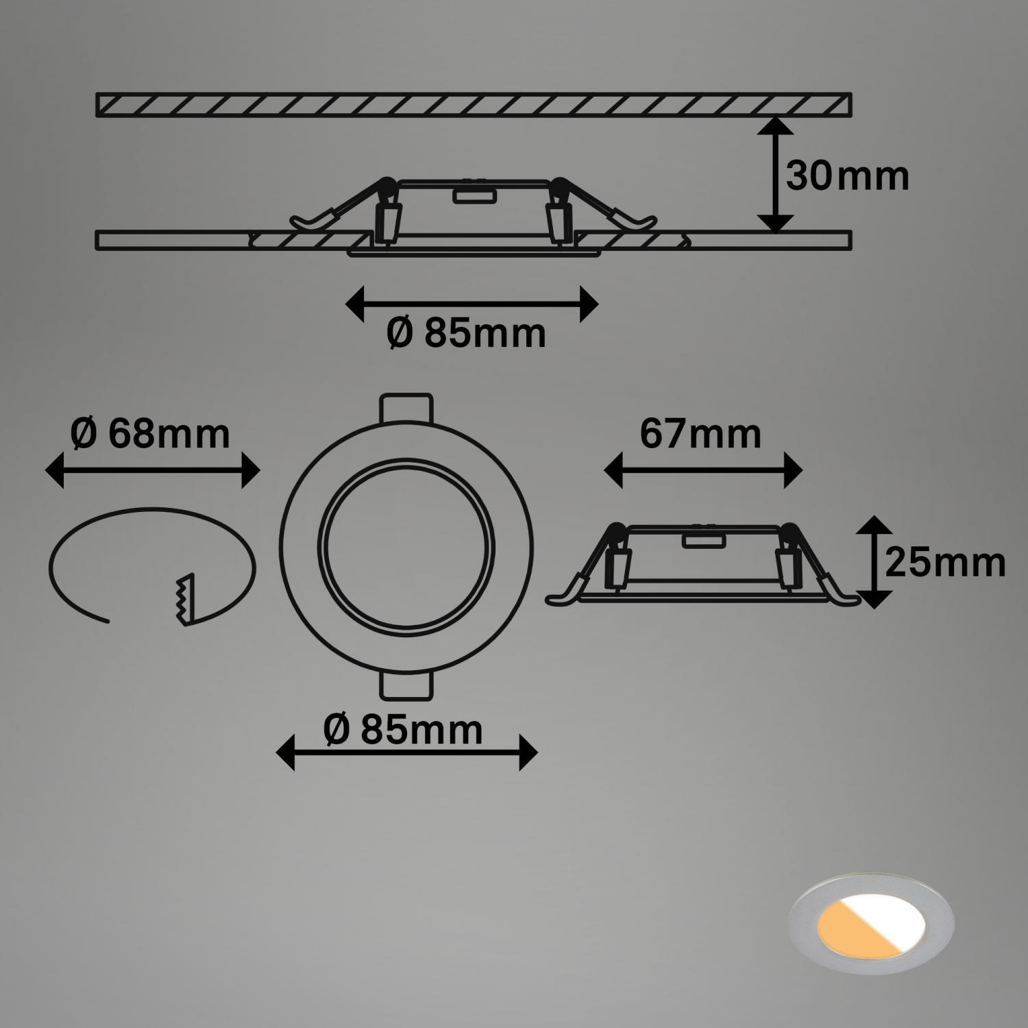 Výška: 25mm, Průměr: 85mm, Ochrana IP: IP20, Barva světla: 3000/4000K, Patice: LED, Vč. světelného zdroje: ano, Materiál: plast, Barva: matný chrom, Počet světelných zdrojů: 3