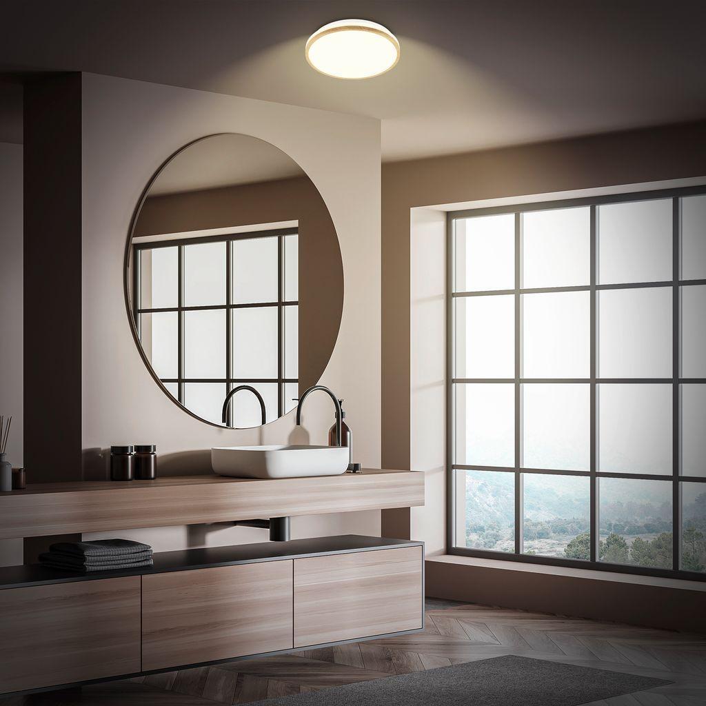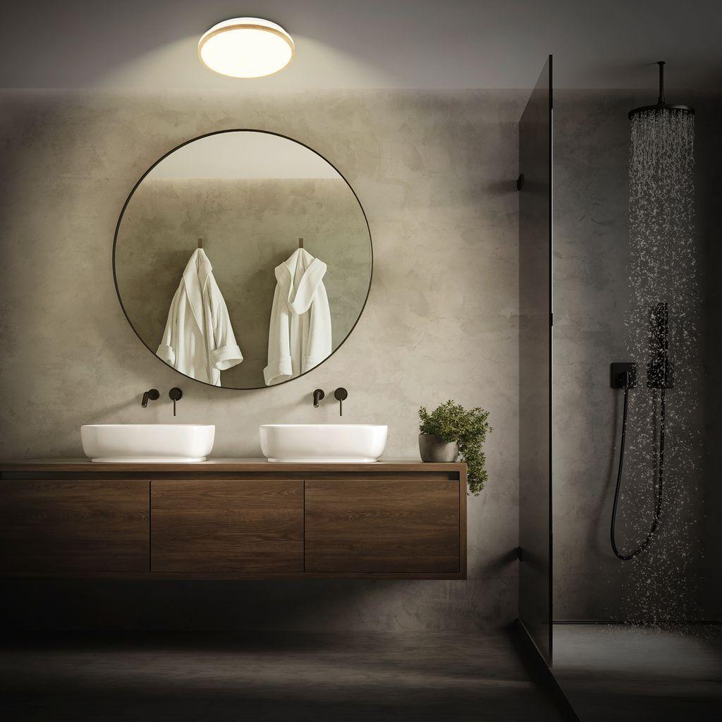 BRILONER Acorus W stropní svítidlo pr.28 cm - 12W, 1200lm, LED, IP44, teplá bílá, bílé/dřevo 3870014