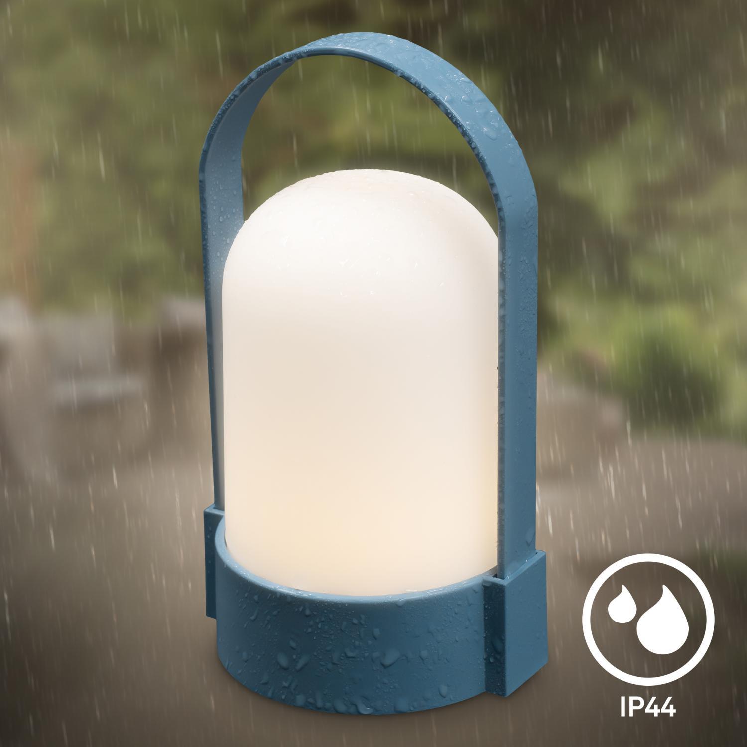 Výška: 155mm, Šířka: 80mm, Délka: 90mm, Ochrana IP: IP44, Barva světla: 3000K, Patice: LED, Vč. světelného zdroje: ano, Materiál: plast / kov, Barva: modrá, Počet světelných zdrojů: 1