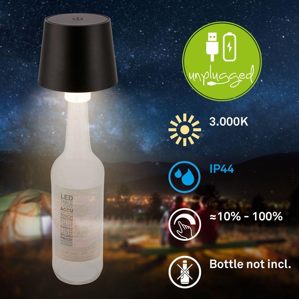 BRILONER Bota je unikátní nabíjecí LED lampička navržená jako elegantní nástavec na láhev, která promění každou běžnou láhev v designový světelný objekt. Díky svému minimalistickému vzhledu v černé barvě a kompaktním rozměrům (Ø 10,5 x 11,5 cm) je ideální pro stylové osvětlení stolů, teras, balkonů i interiérů – ať už na party, romantickou večeři, nebo příjemné posezení s přáteli.