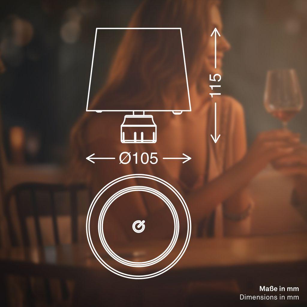 Lampička nabízí moderní dotykové ovládání – jednoduše nastavíte požadovanou intenzitu světla díky plynulému stmívači s paměťovou funkcí. Teplá bílá barva světla navodí útulnou atmosféru podle vašich představ.