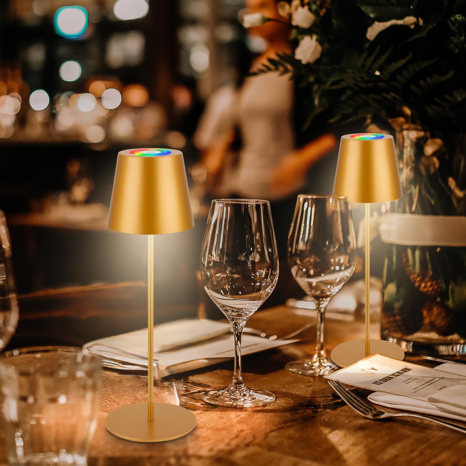Výška: 360mm, Průměr: 105mm, Ochrana IP: IP44, Barva světla: RGB+2700K, Patice: LED, Vč. světelného zdroje: ano, Materiál: plast / kov, Barva: zlatá, Počet světelných zdrojů: 1