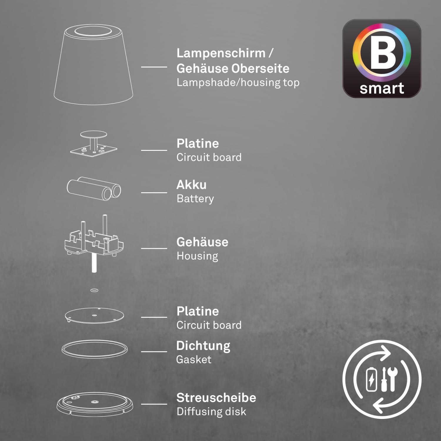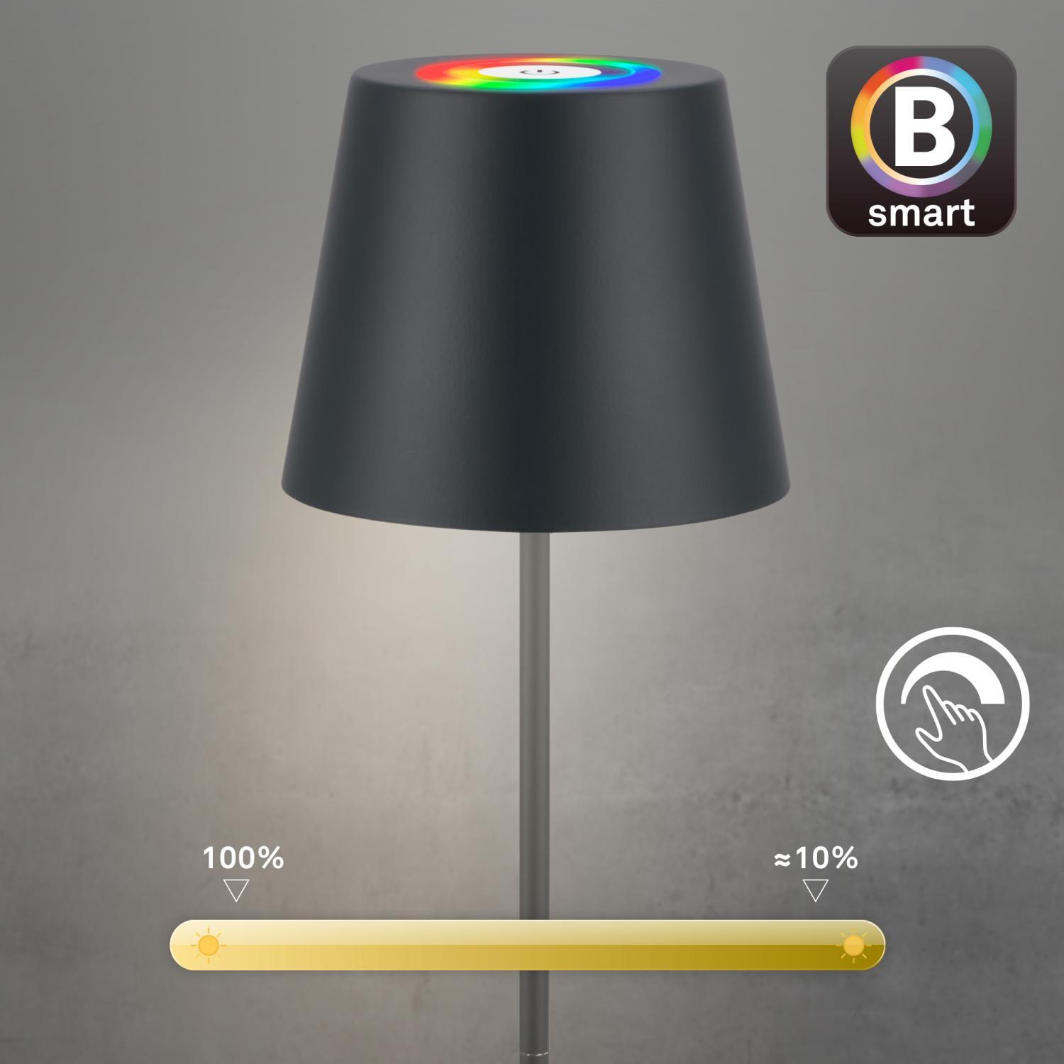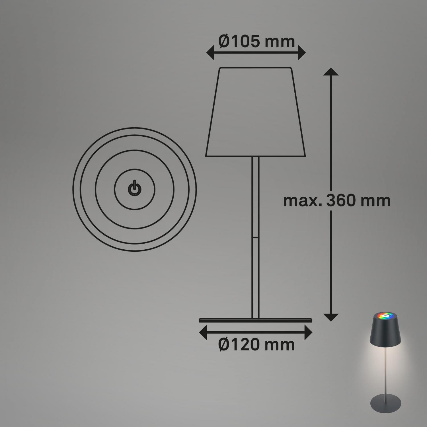 Výška: 360mm, Výměna barev: ano, Stmívatelné: ano, Průměr: 105mm, Ochrana IP: IP44, Barva světla: RGB+2700K, Patice: LED, Vč. světelného zdroje: ano, Materiál: kov, Barva: antracit, Počet světelných zdrojů: 1