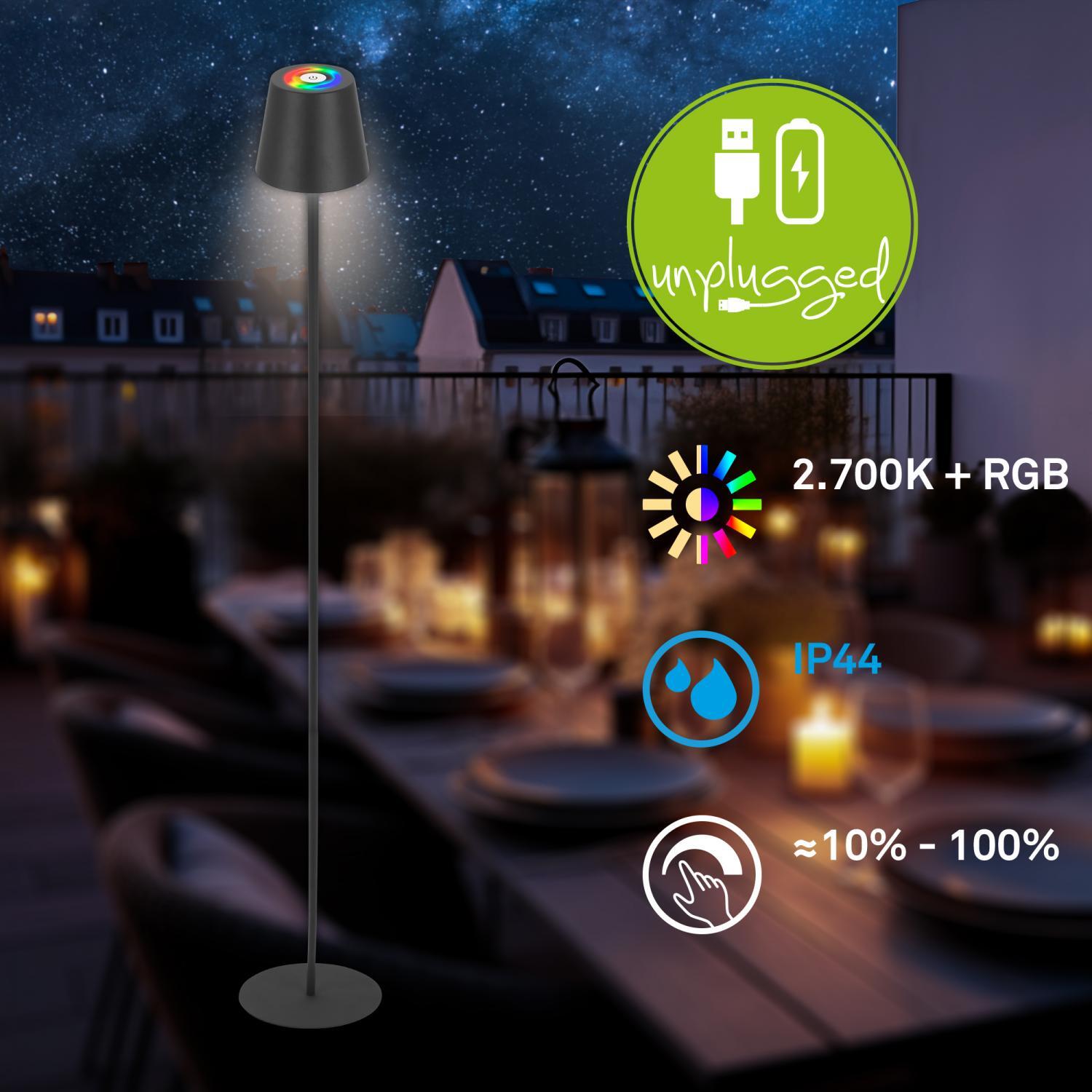 Výška: 1330 mm, Životnost: 20000h, Průměr: 210mm, Ochrana IP: IP44, Barva světla: RGB+2700K, Patice: LED, Vč. světelného zdroje: ano, Materiál: kov, Barva: antracit, Počet světelných zdrojů: 1
