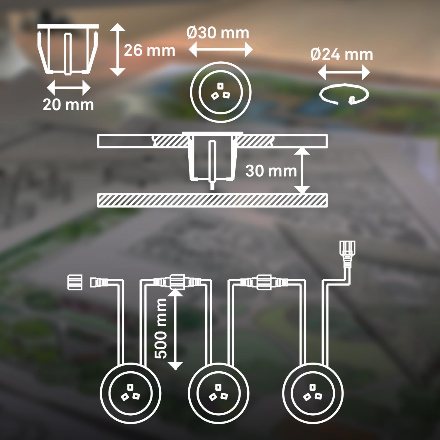 Výška: 26 mm, Životnost: 50000h, Průměr: 30mm, Ochrana IP: IP67, Barva světla: 3000K, Patice: LED, Vč. světelného zdroje: ano, Materiál: plast / kov, Barva: ocel, Počet světelných zdrojů: 3