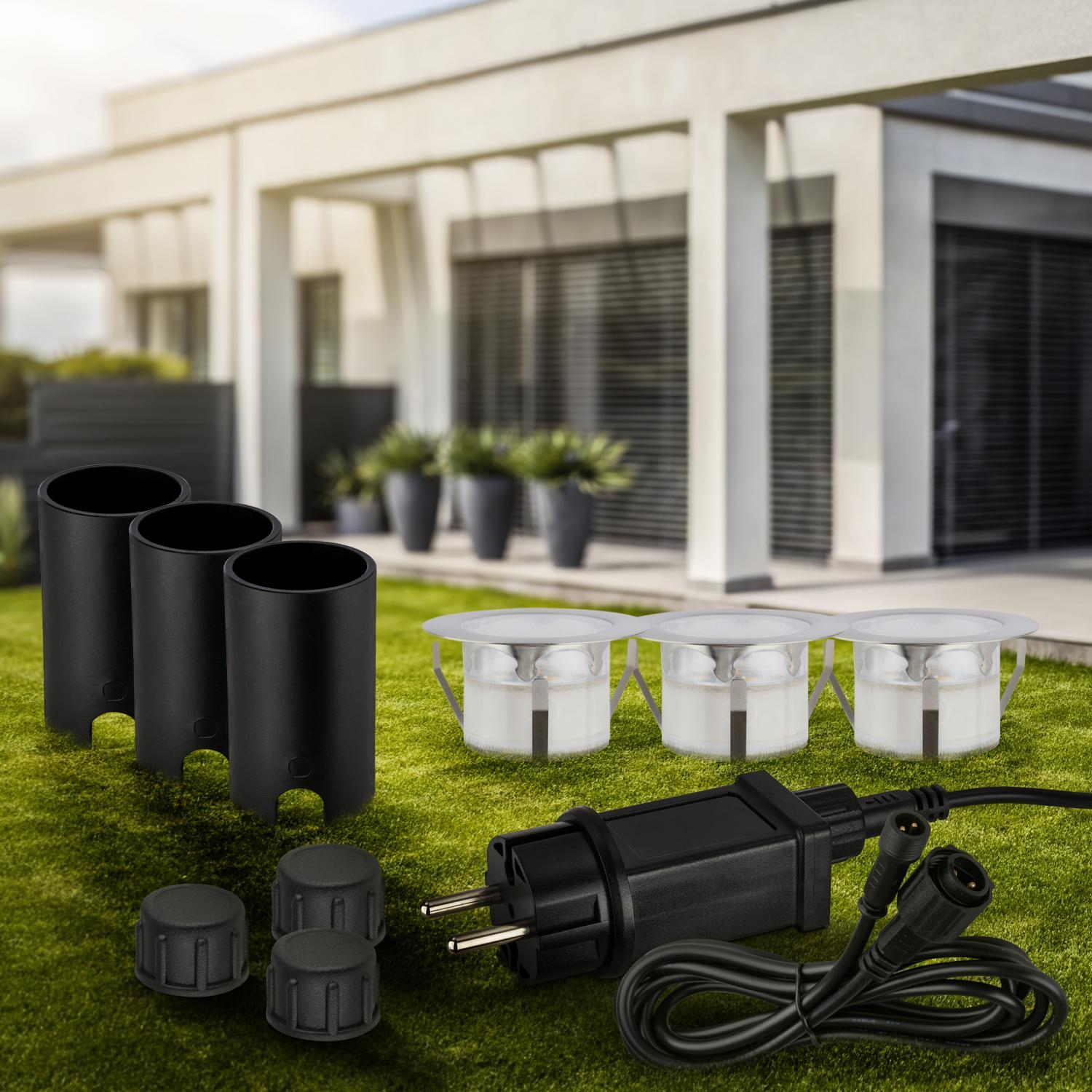 Výška: 66 mm, Životnost: 50000h, Průměr: 45mm, Ochrana IP: IP67, Barva světla: 3000K, Patice: LED, Vč. světelného zdroje: ano, Materiál: plast / kov, Barva: ocel, Počet světelných zdrojů: 3