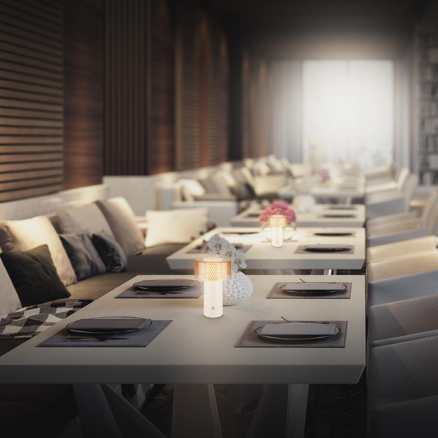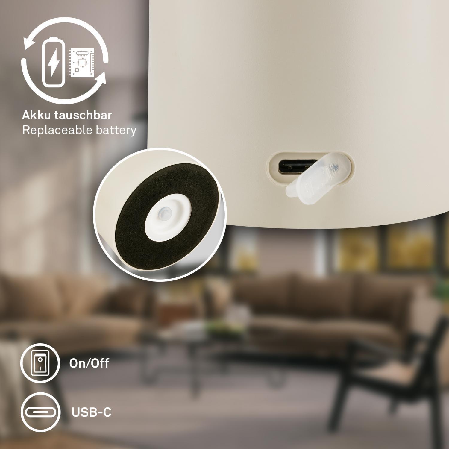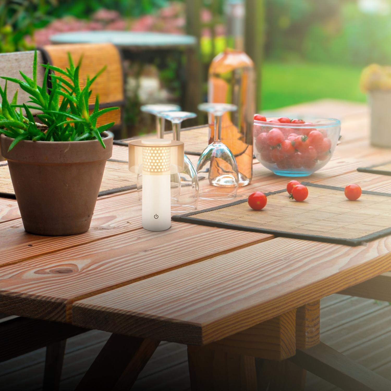 BRILONER Gila stolní lampa - 2,6W, 200lm, bezdrátová, LED, IP44, dotykový vypínač, stmívatelná, kávová/světlešedá 7669014