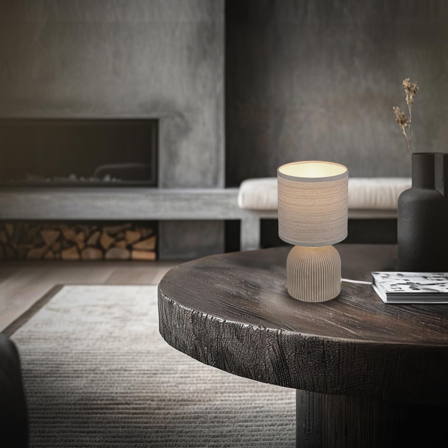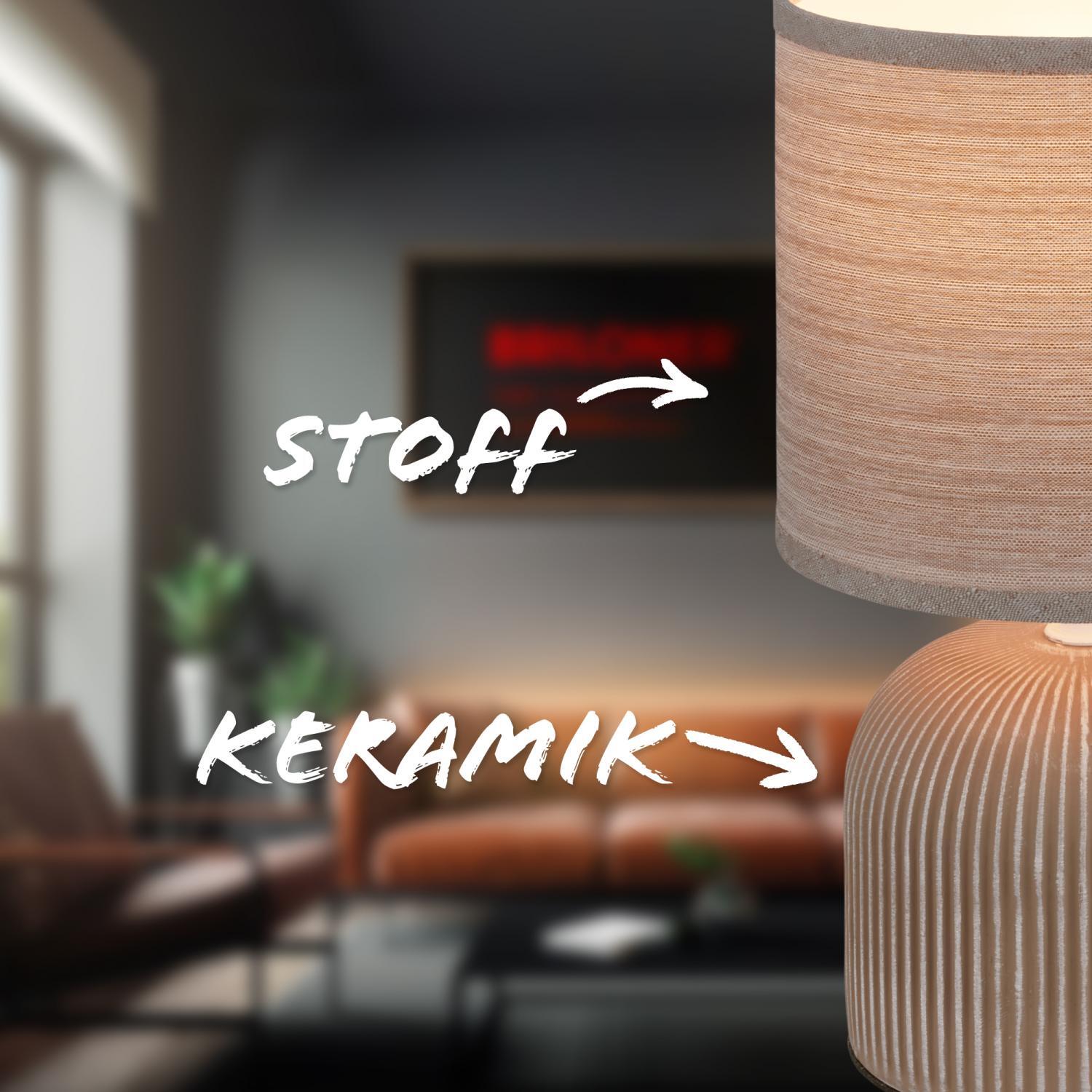 Stolní lampička BRILONER Ino vyniká kombinací přírodního dojmu a moderní elegance. Látkové stínidlo v příjemném hnědém odstínu jemně rozptyluje světlo a vytváří útulnou atmosféru v každém interiéru – ideální pro ložnici, obývací pokoj nebo pracovnu. Keramický podstavec s jemnou vertikální strukturou přidává na vizuální zajímavosti a stabilitě celé lampy.