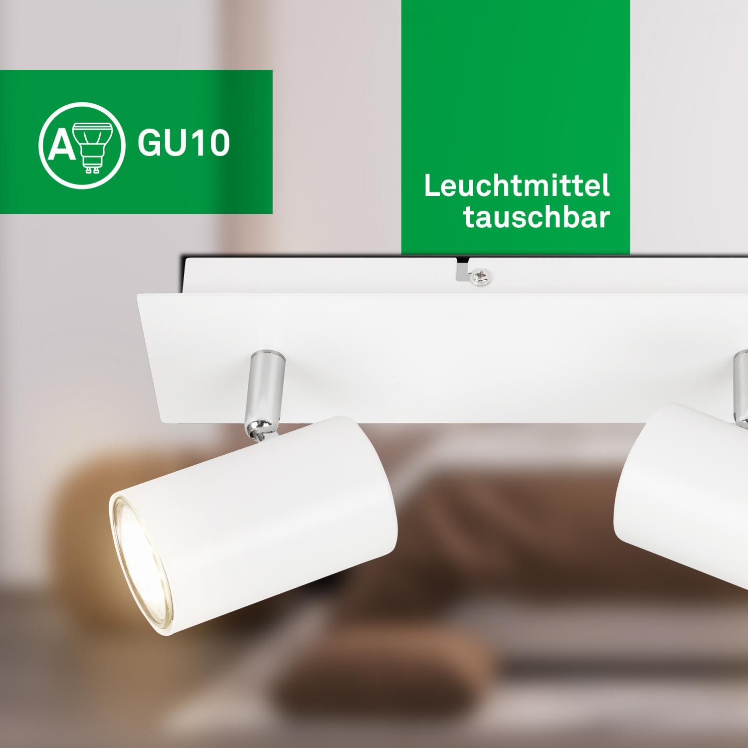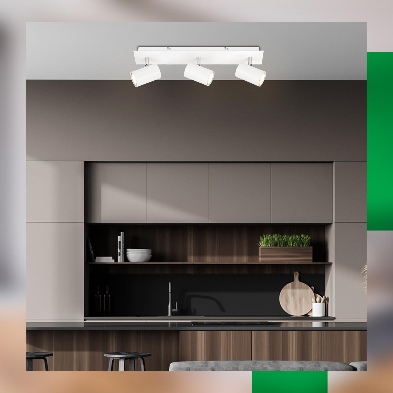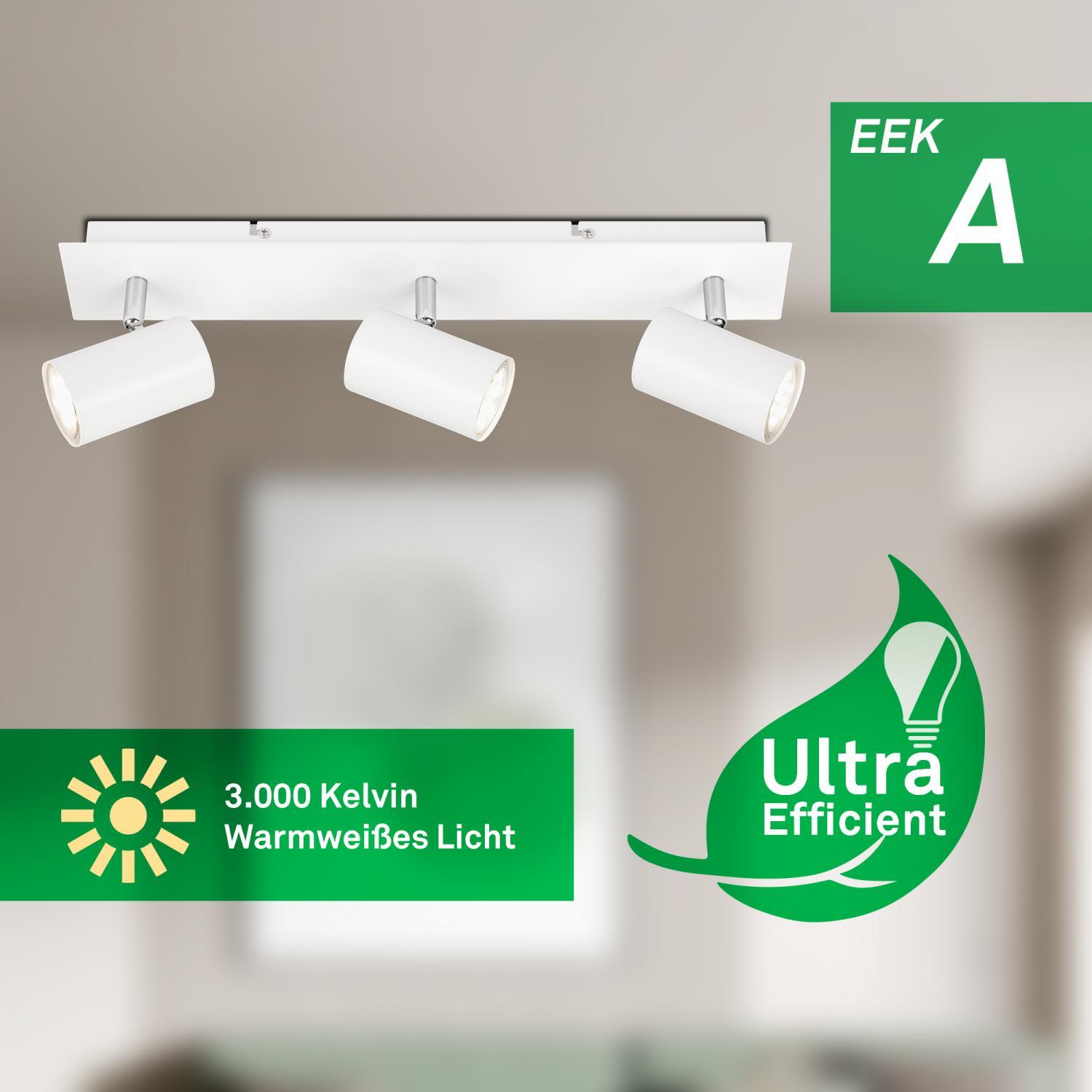 Výška: 125 mm, Životnost: 50000h, Šířka: 80mm, Délka: 450mm, Ochrana IP: IP20, Barva světla: 3000K, Patice: GU10, Vč. světelného zdroje: ano, Materiál: kov, Barva: bílá, Počet světelných zdrojů: 3