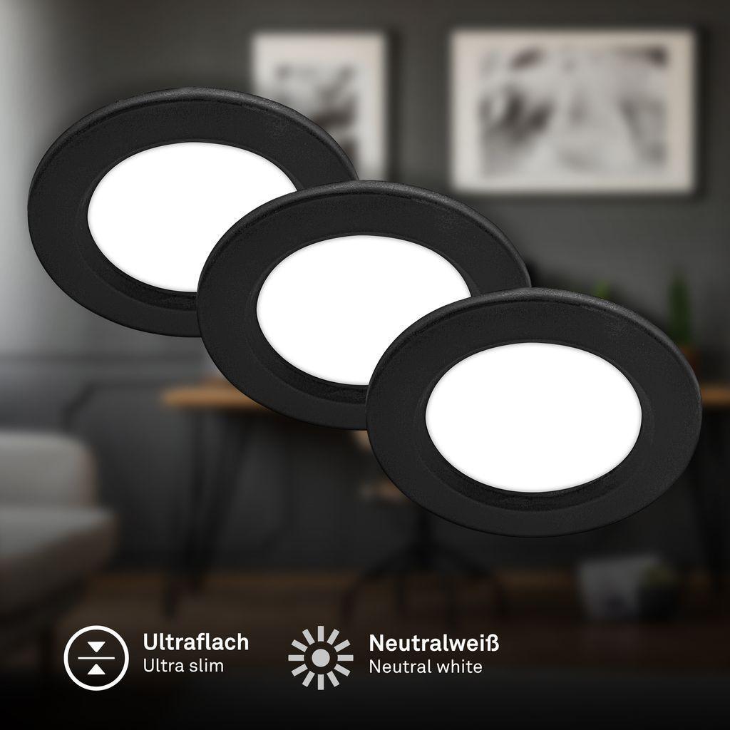 BRILONER Jeft vestavná svítidla 76mm, sada 3 ks – 230V, 3W, 330lm, LED, neutrální bílá, černá