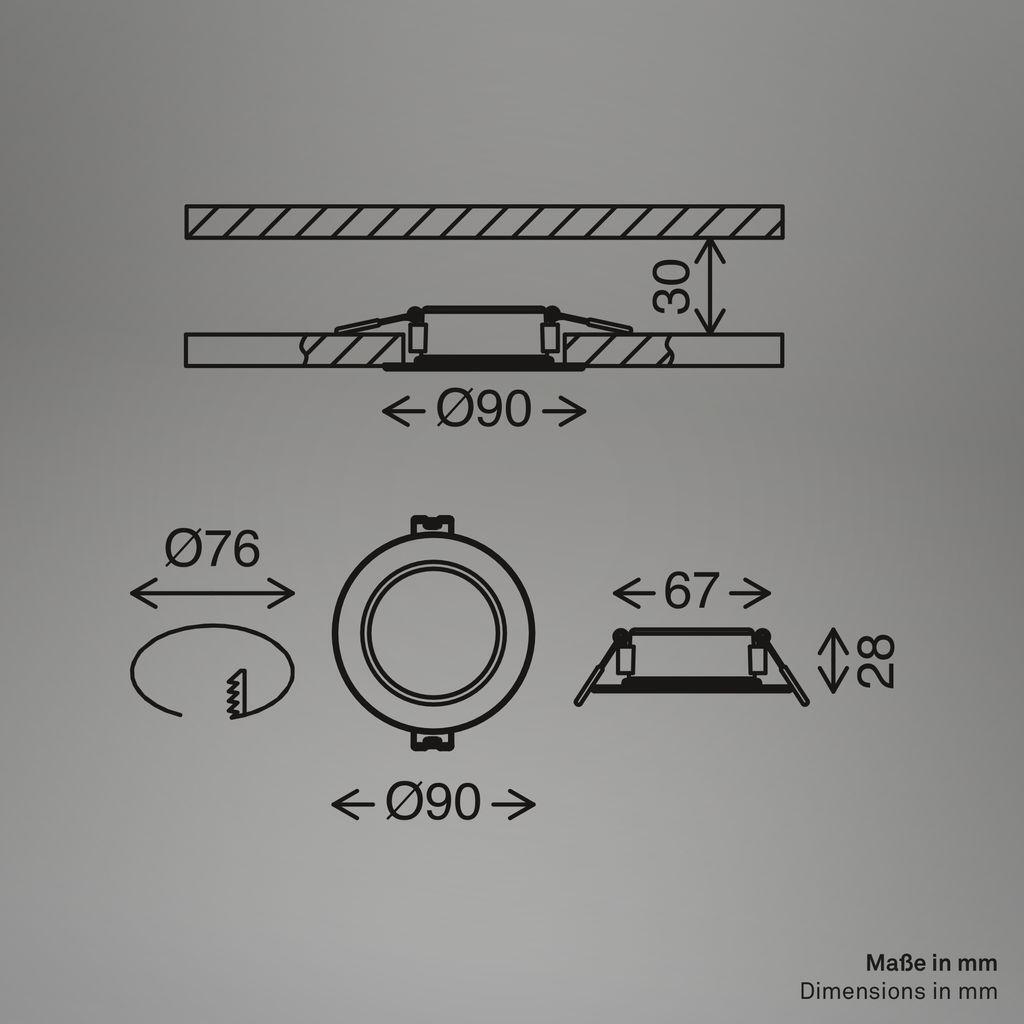 • Průměr svítidla: 90 mm, výška: 28 mm