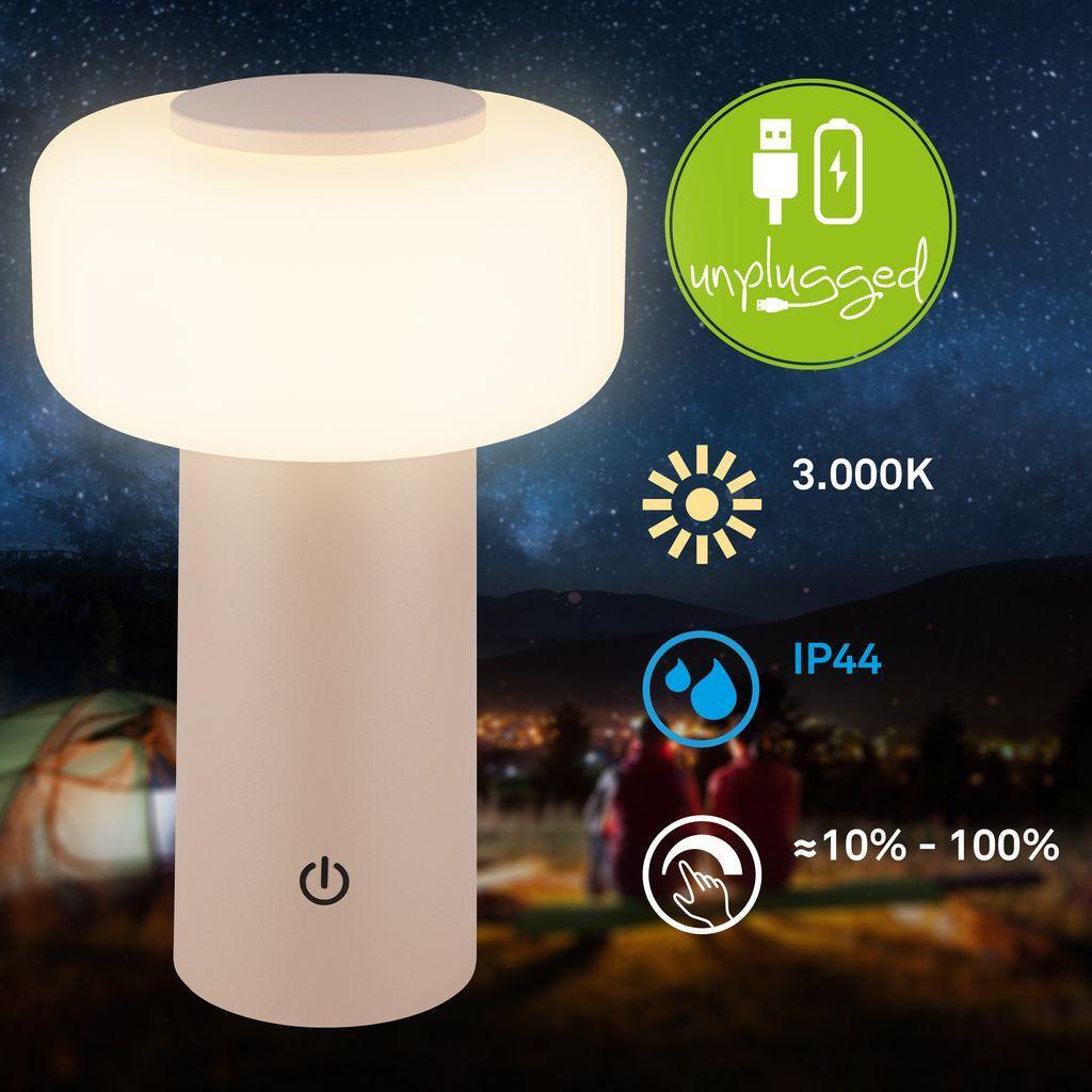 Výška: 205mm, Průměr: 130mm, Ochrana IP: IP44, Vč. světelného zdroje: ano, Materiál: plast / kov, Barva: béžová, Počet světelných zdrojů: 1