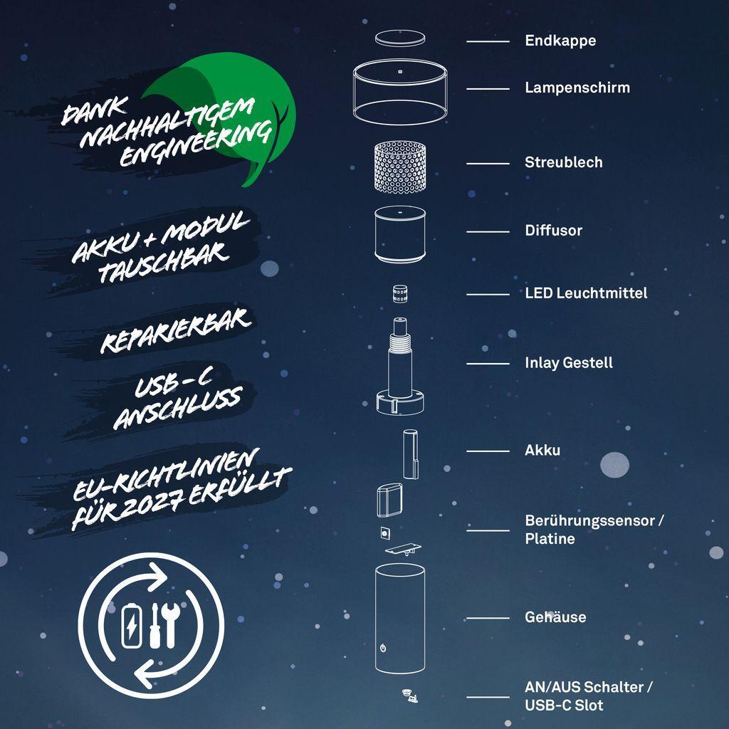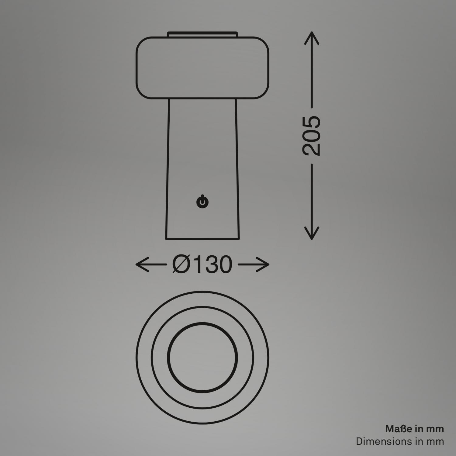 Výška: 205mm, Průměr: 130mm, Ochrana IP: IP44, Vč. světelného zdroje: ano, Materiál: plast / kov, Barva: šedá, Počet světelných zdrojů: 1