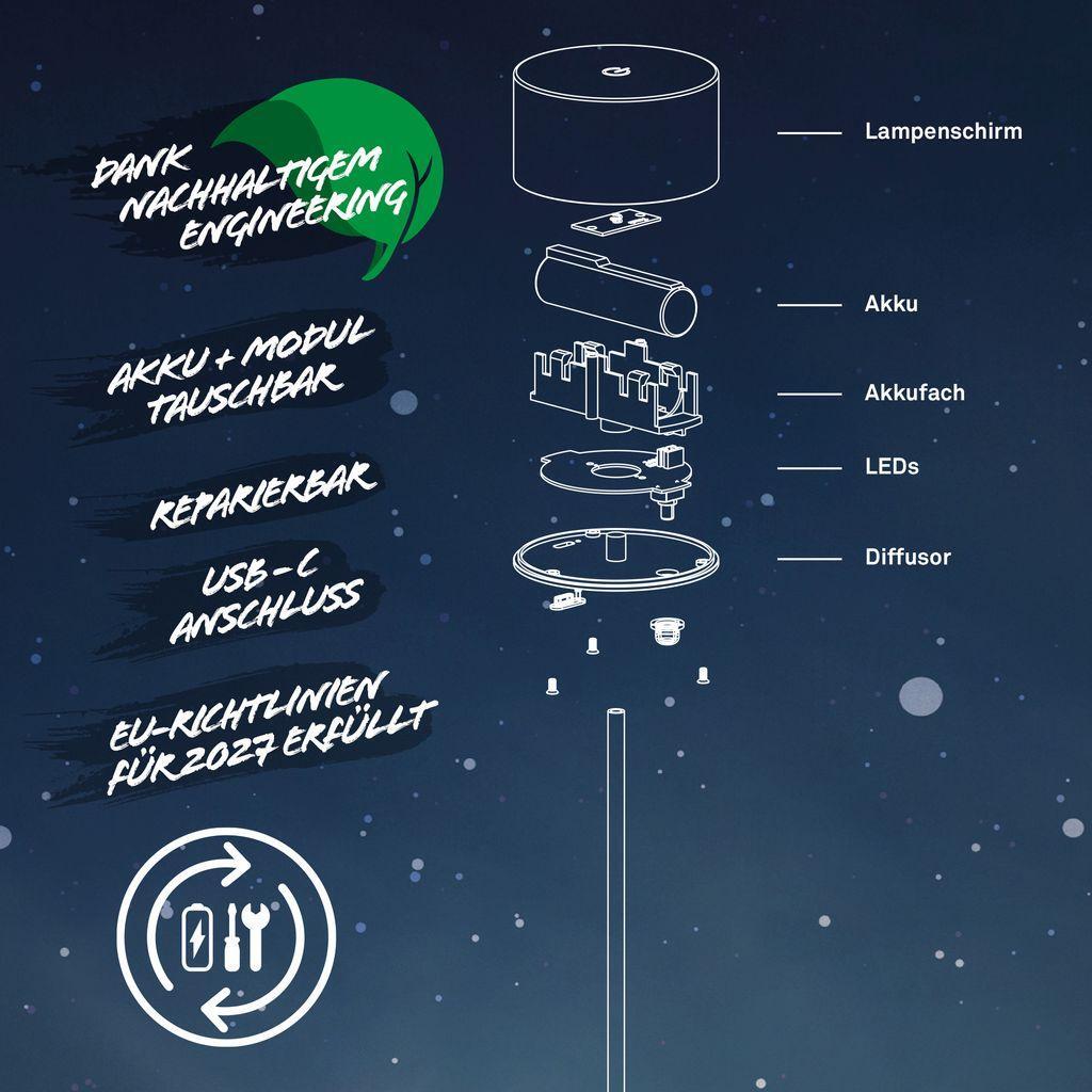 Výška: 190mm, Průměr: 75mm, Ochrana IP: IP44, Vč. světelného zdroje: ano, Materiál: plast / kov, Barva: béžová