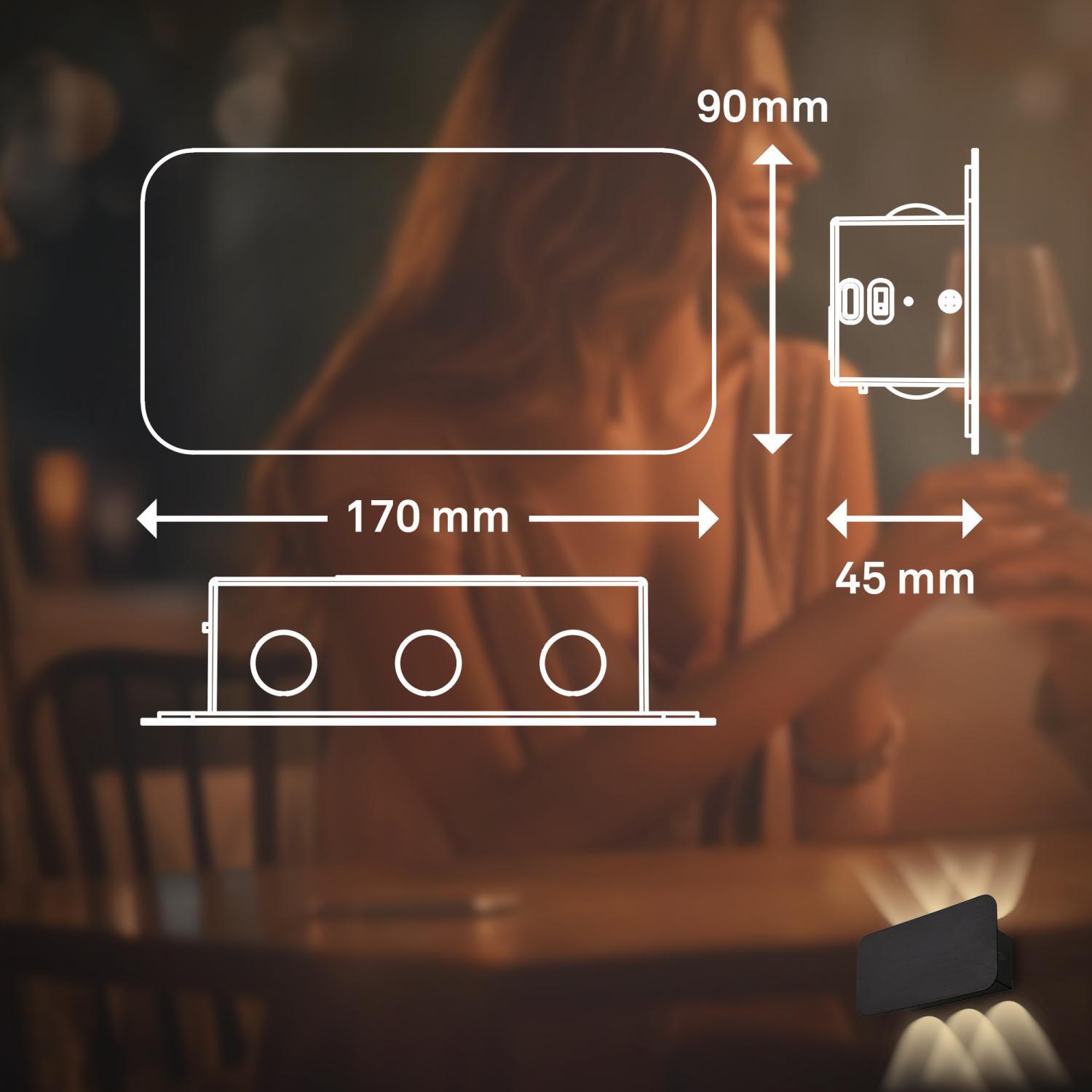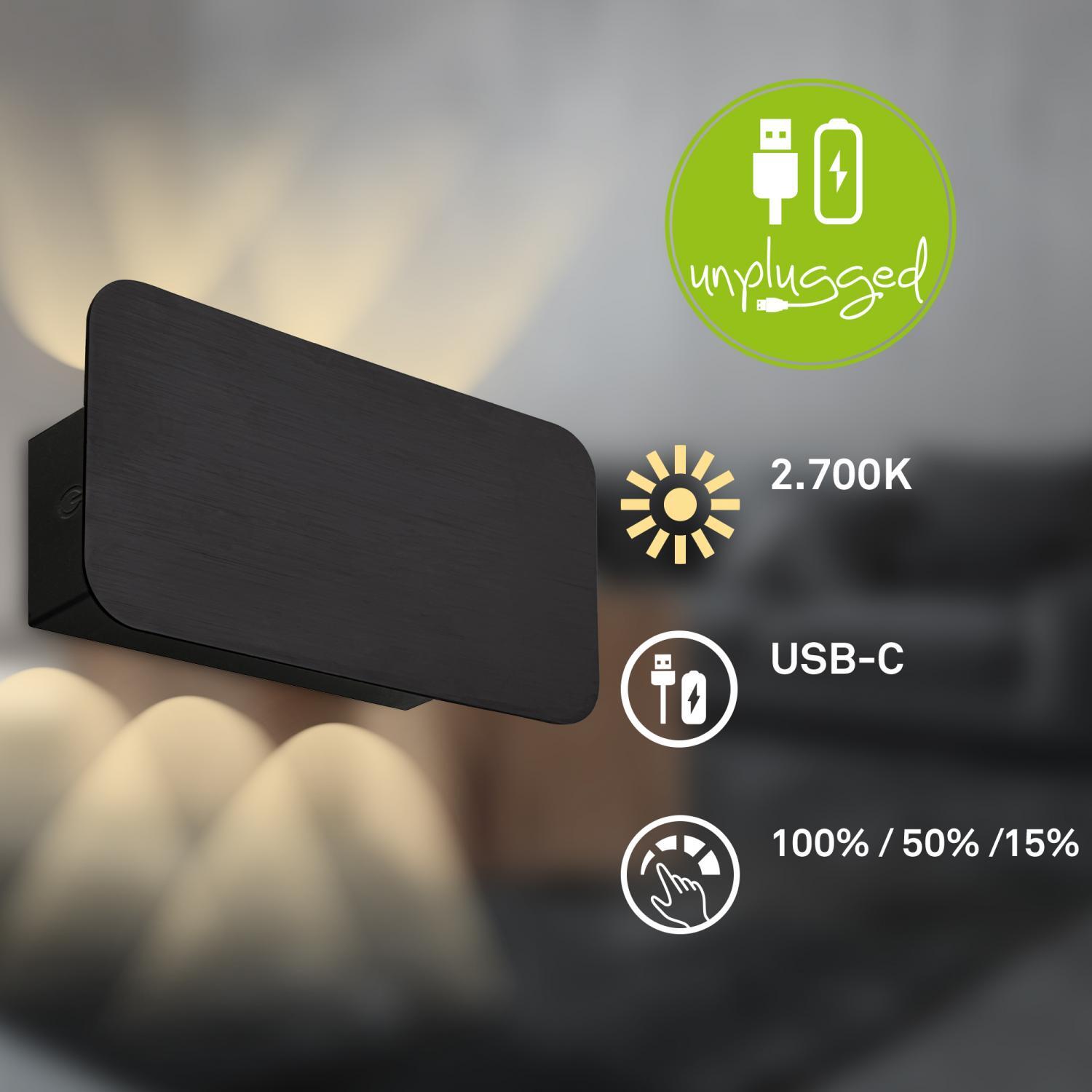 BRILONER LED nabíjecí nástěnné svítidlo 17x9 cm – bezdrátové, stmívatelné, Up/Downlight, dotykový vypínač, černá 3807015