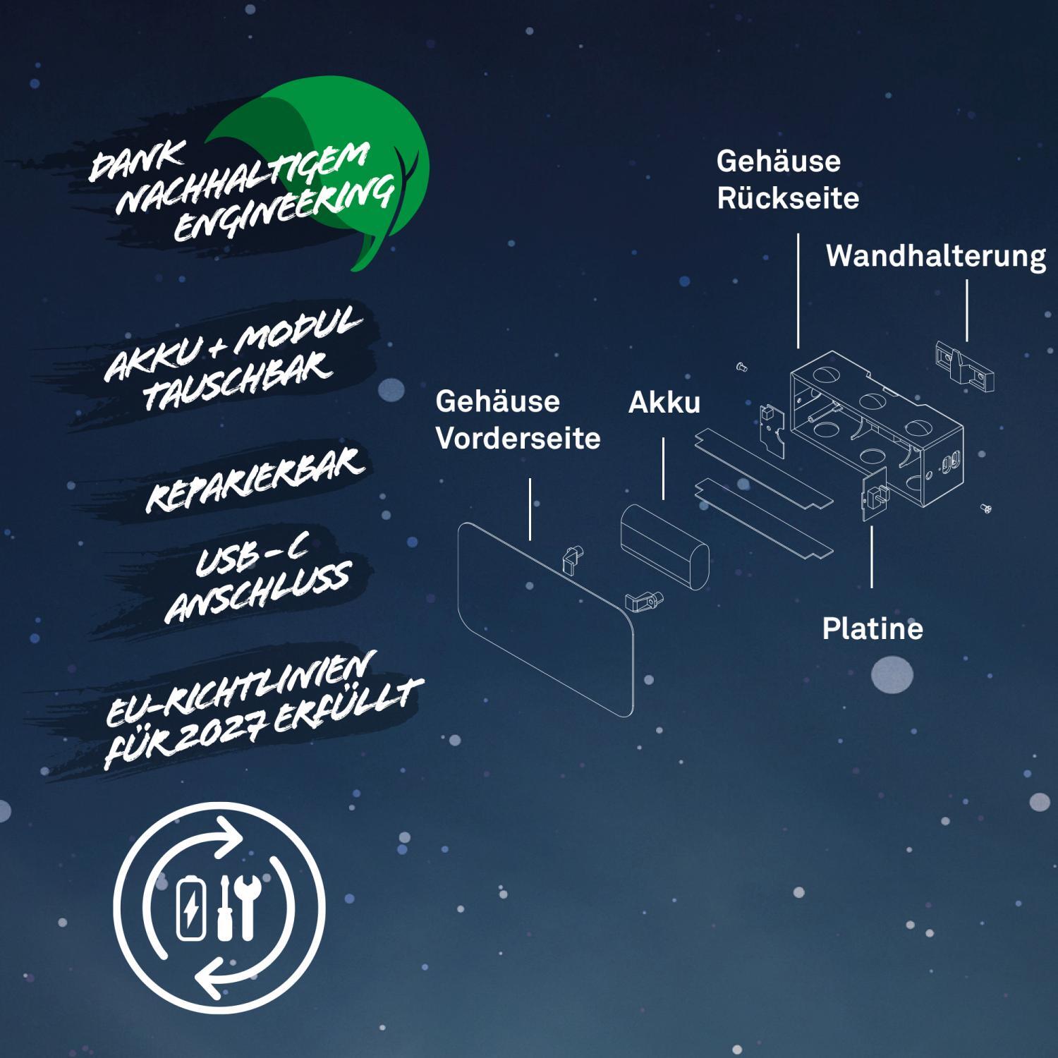 Výška: 45mm, Šířka: 90mm, Délka: 170mm, Ochrana IP: IP20, Barva světla: 2700K, Patice: LED, Vč. světelného zdroje: ano, Materiál: plast / kov, Barva: černá, Počet světelných zdrojů: 1