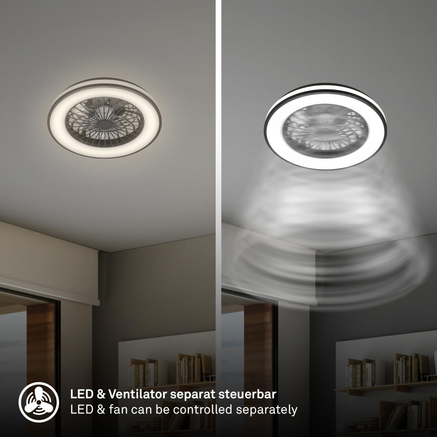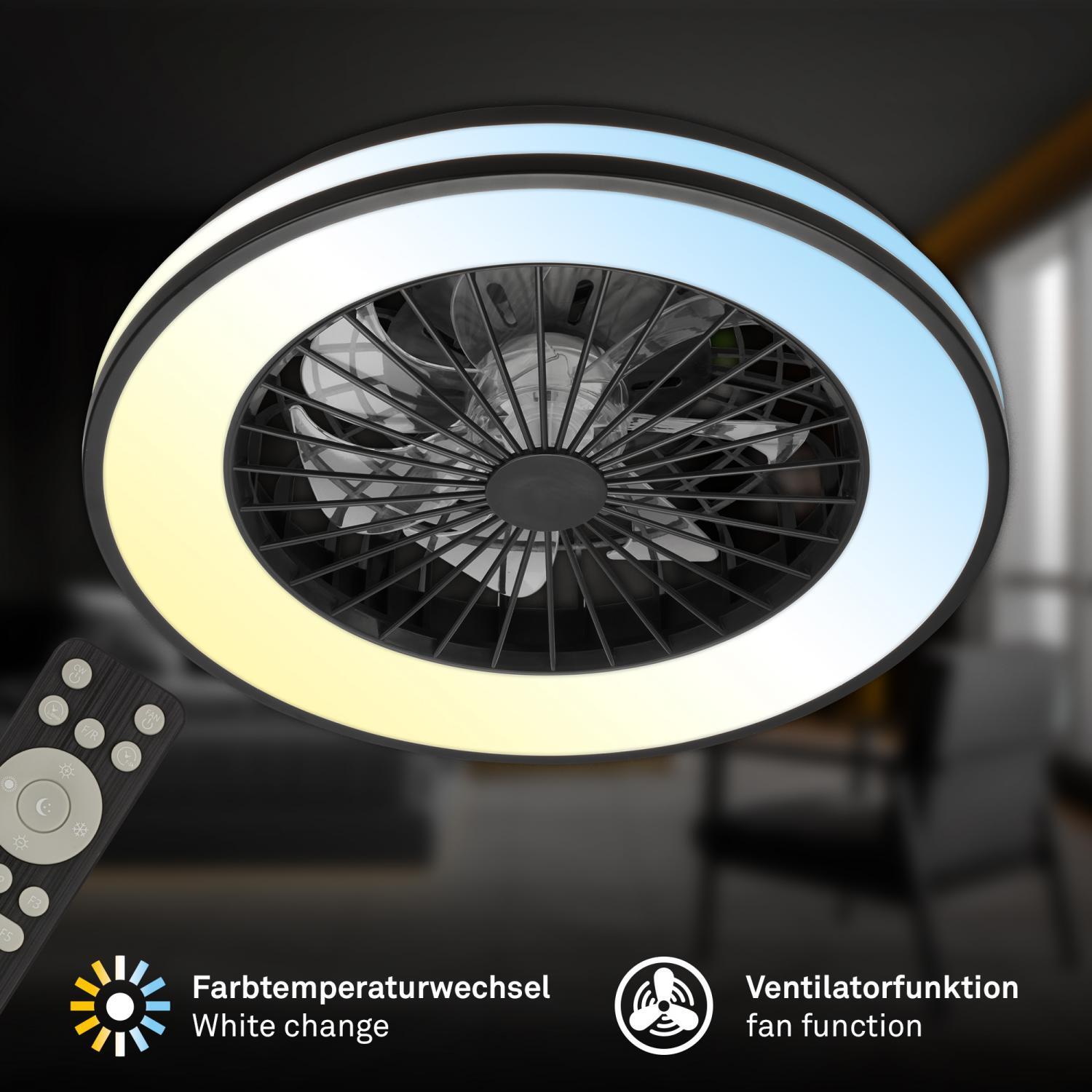 BRILONER LED stropní svítidlo s ventilátorem, 5 rychlostí, dálkový ovladač, CCT, černé 3801015