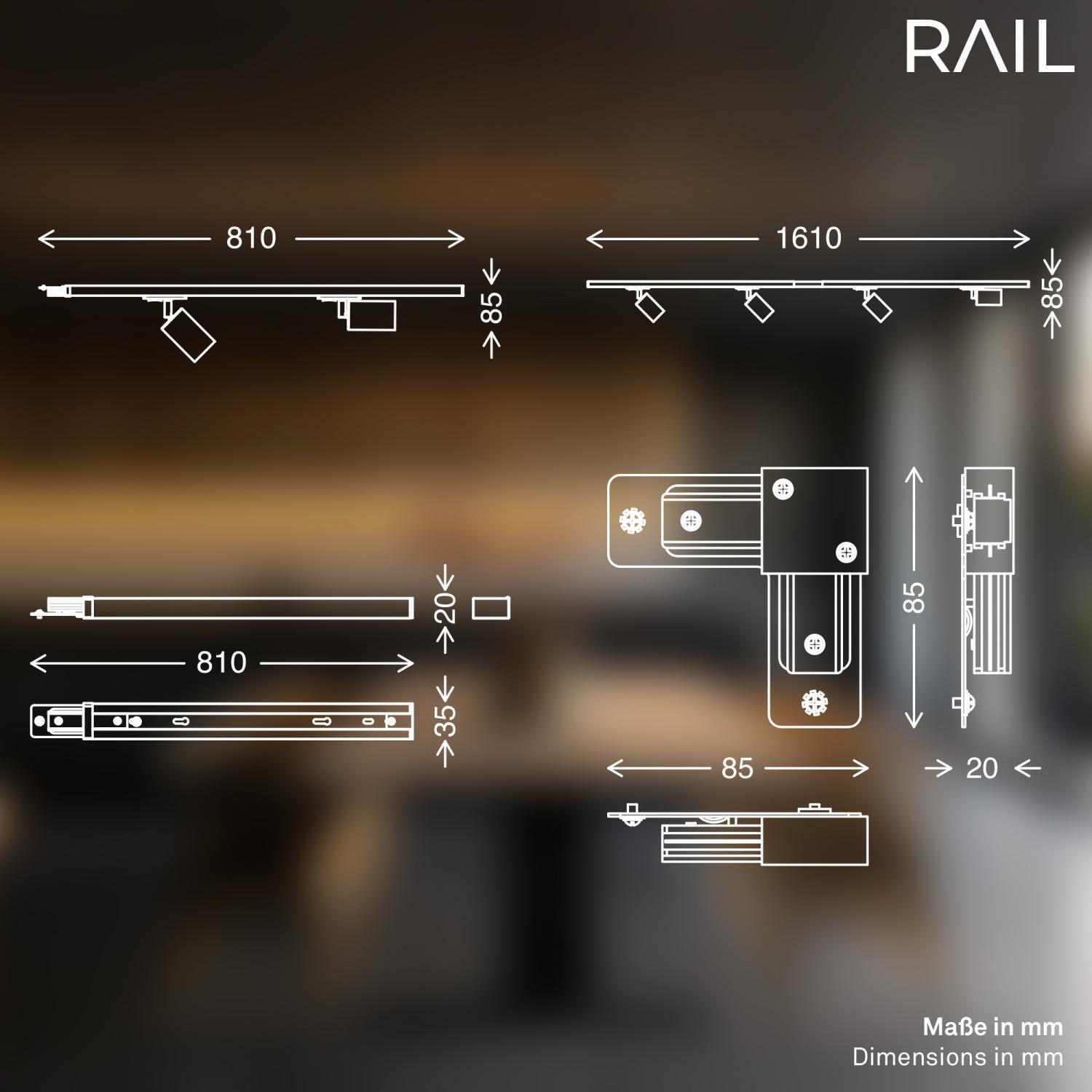 • Kompletní lištový systém v černé barvě – obsahuje vše potřebné pro okamžitou instalaci ve tvaru L.