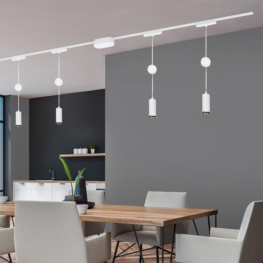Objevte moderní a flexibilní osvětlení s kompletním systémem BRILONER Luxtrail v bílé barvě. Tento 48V lištový systém nabízí čtyři designová LED závěsná svítidla na dvoumetrové přímé kolejnici, která jsou výškově nastavitelná a připravená okamžitě rozzářit váš interiér. Ideální volba pro kuchyně, jídelny, obývací pokoje i moderní kanceláře. Minimalistický bílý kovový design zapadne do každého interiéru a podtrhne jeho čistý styl.