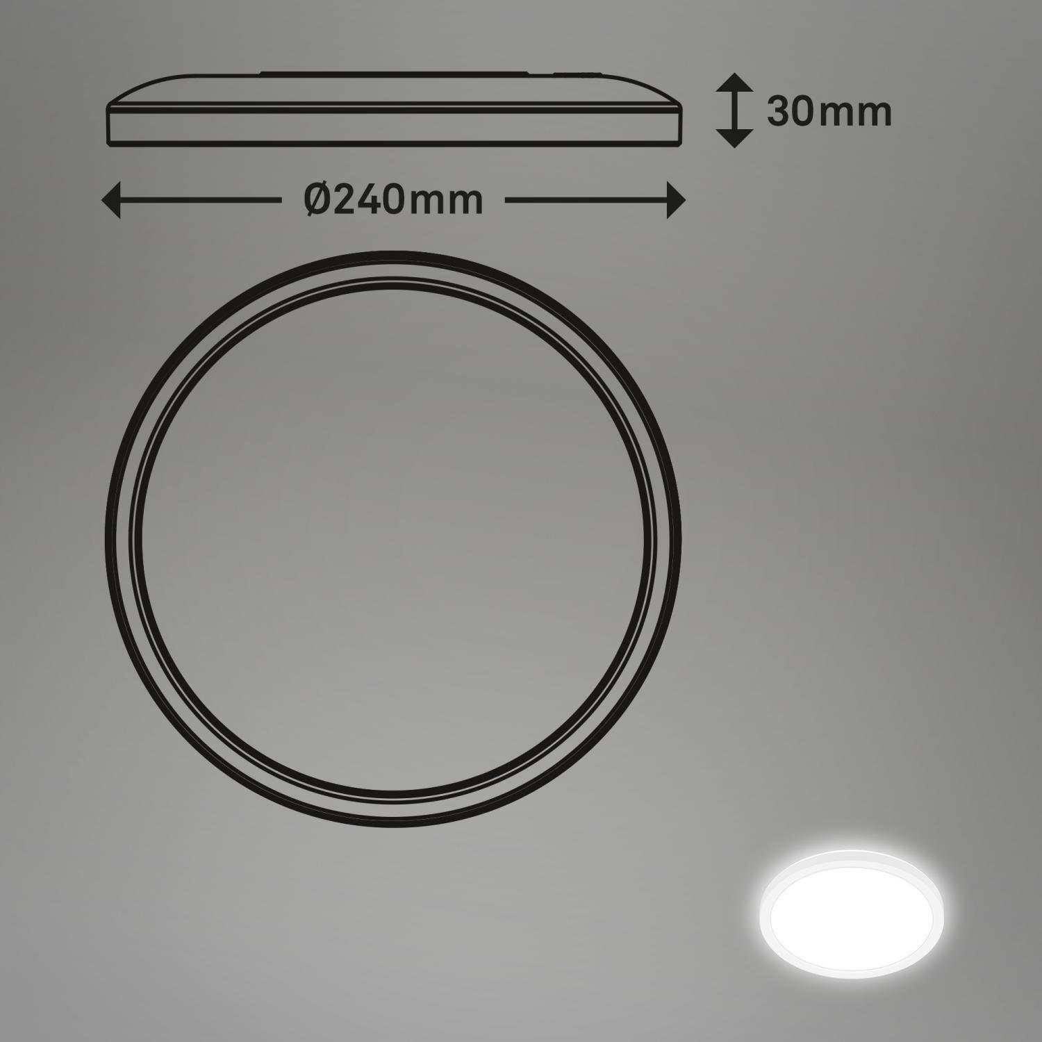 Výška: 30mm, Průměr: 240mm, Ochrana IP: IP44, Barva světla: 4000K, Patice: LED, Vč. světelného zdroje: ano, Materiál: plast, Barva: bílá, Počet světelných zdrojů: 1