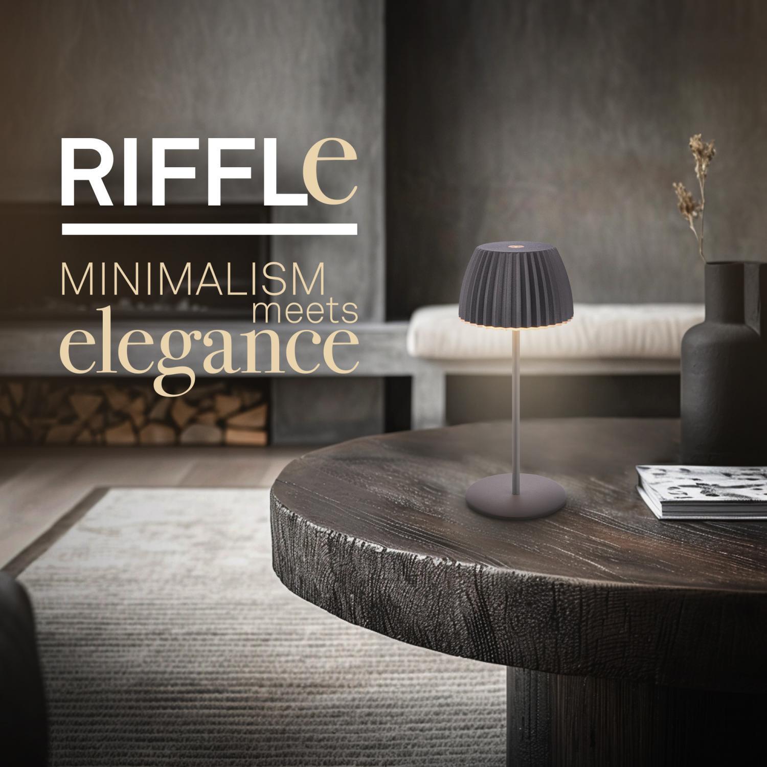 BRILONER Nabíjecí stolní lampa Riffle Mini - 20 cm, 1,5W, 150lm, bezdrátová, LED, stmívatelné, dotykový vypínač, antracit 7552015