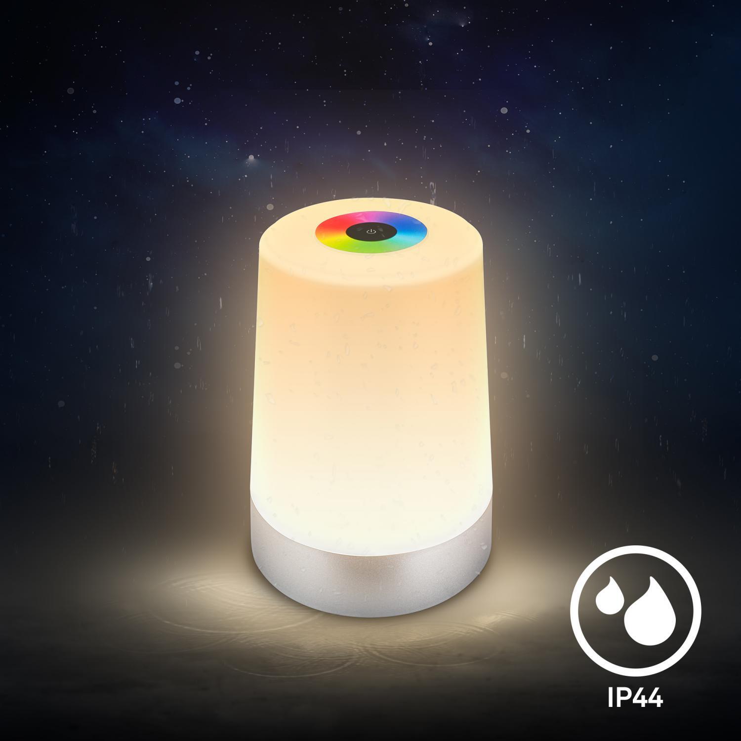 Výška: 130mm, Průměr: 90mm, Ochrana IP: IP44, Barva světla: RGB+2700K, Patice: LED, Vč. světelného zdroje: ano, Materiál: plast, Barva: matný chrom, Počet světelných zdrojů: 1