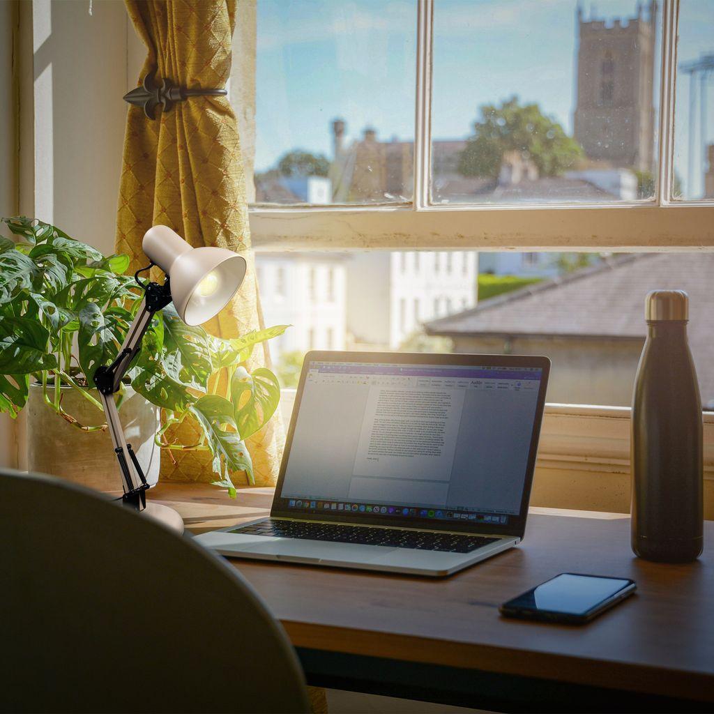Lampička disponuje otočným a výkyvným ramenem i hlavicí, což umožňuje přesné směrování světla přesně tam, kde jej potřebujete. Je ideální pro čtení, studium i kreativní práci, kde je kvalitní osvětlení klíčové.