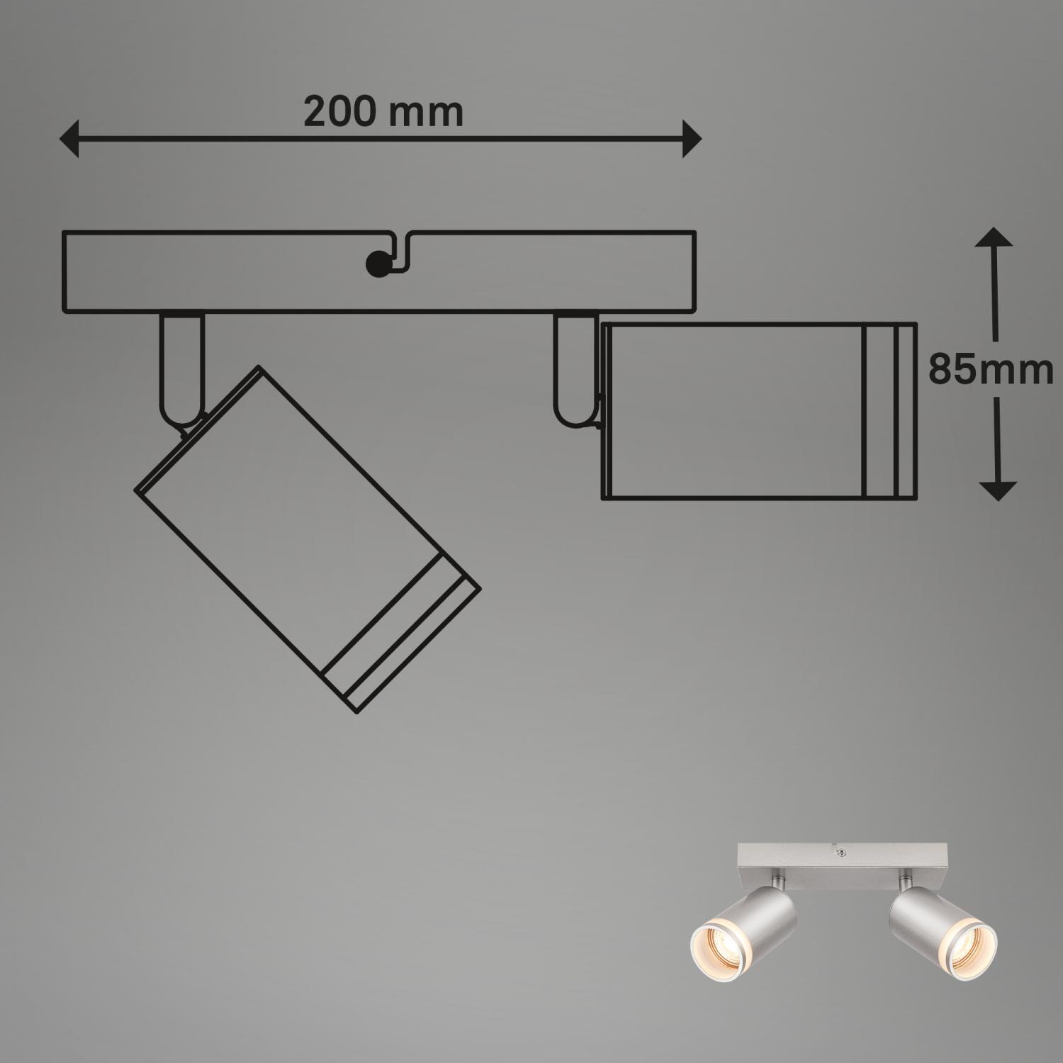 Výška: 160 mm, Šířka: 60mm, Délka: 200mm, Ochrana IP: IP20, Patice: GU10, Vč. světelného zdroje: ne, Materiál: plast / kov, Barva: matný chrom, Počet světelných zdrojů: 2