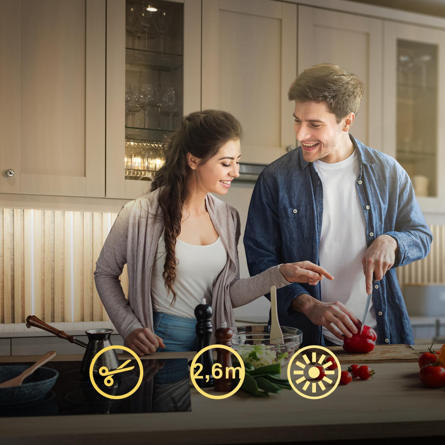 Životnost: 20000h, Šířka: 10mm, Délka: 260mm, Ochrana IP: IP20, Barva světla: 3000K, Patice: LED, Vč. světelného zdroje: ano, Materiál: plast, Barva: bílá, Počet světelných zdrojů: 4