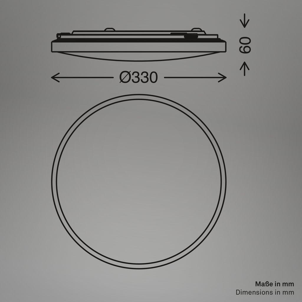 Výška: 60 mm, Průměr: 330mm, Ochrana IP: IP44, Vč. světelného zdroje: ano, Materiál: plast / kov, Barva: chrom