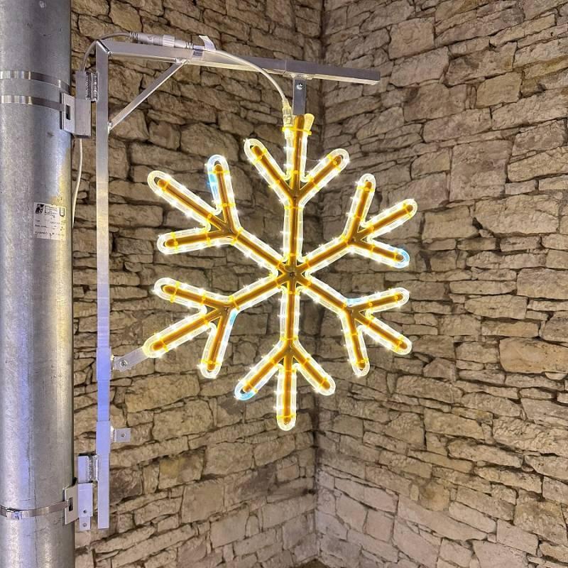 Tato vločka je ideální nejen pro veřejná prostranství, ale také pro soukromé domy a firmy, které chtějí v období Vánoc a zimních měsíců vytvořit stylovou a decentně slavnostní atmosféru. Kombinujte více dekorací pro jednotný vizuální styl celé ulice nebo areálu. Vhodná pro celoroční venkovní použití.