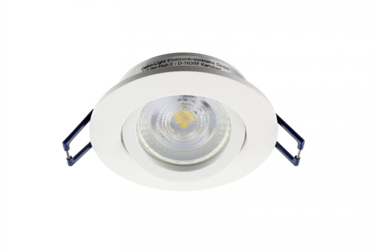 Výška: 23 mm, Stmívatelné: ano, záleží na použité žárovce, Hmotnost: 76g, Úhel naklopení: 30°, Průměr: 82mm, Montážní rozměr: 68mm, Vč. světelného zdroje: ano, Materiál: kov, Barva: bílá