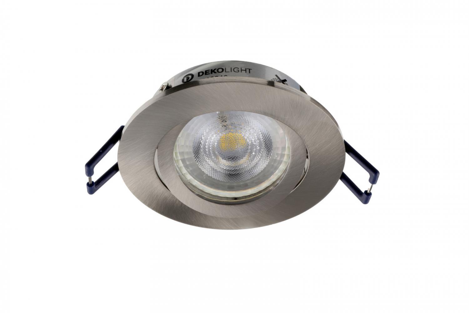 Výška: 23 mm, Stmívatelné: ano, záleží na použité žárovce, Hmotnost: 74g, Úhel naklopení: 30°, Průměr: 82mm, Montážní rozměr: 68mm, Vč. světelného zdroje: ano, Materiál: kov, Barva: stříbrná