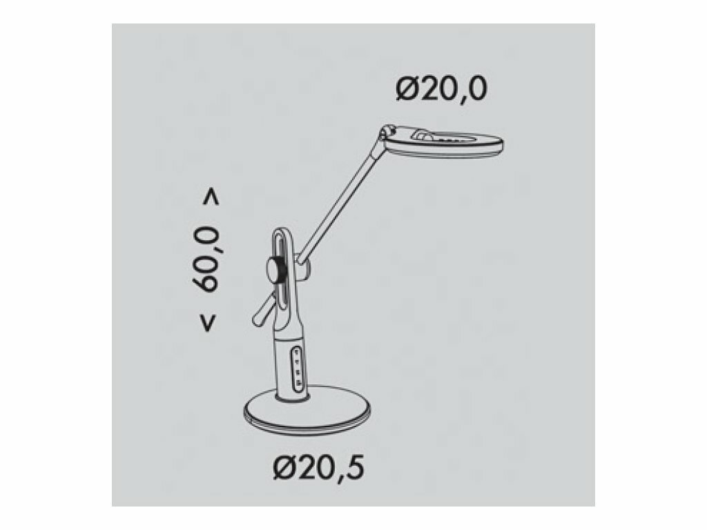Rozměry (základna>ramena>hlava): 20.5 x 60 x 20, Napájení [V]: ~230, Max. příkon [W]: 10, Teplota chromatičnosti [K]: 3000-6000K, Barva: stříbrná, černá, Regulace intenzity: ANO, Materiál: Kov, plast, Stupeň krytí IP: 20, Třída ochrany: III, Světelný tok [lm]: 550, Životnost: 30000h, Ra: 80