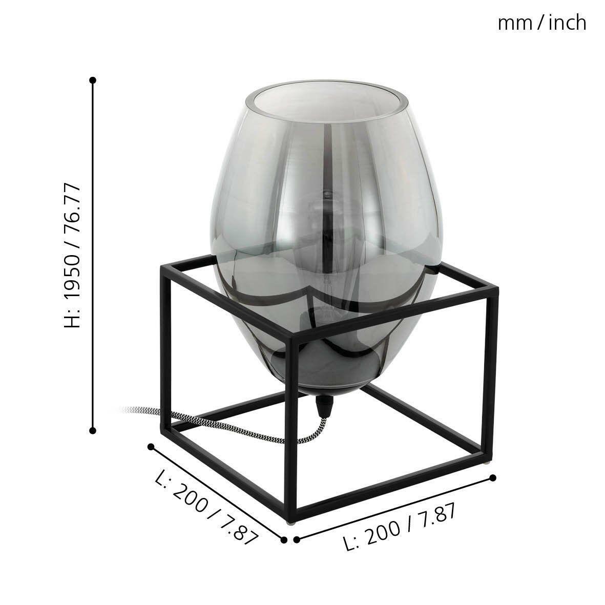 Příkon: 1X40W, Energetická třída: A++ - E, Patice: E27, Zdroj světla: E27, Zdroj součástí balení: bez zdroje, Materiál těla: ocel, Barva těla: černá, Materiál stínidla: kouřové sklo, Barva stínidla: černá-průhledná, Délka: 200 mm, Šířka: 200 mm, Výška: 305 mm, Hmotnost: 1,774