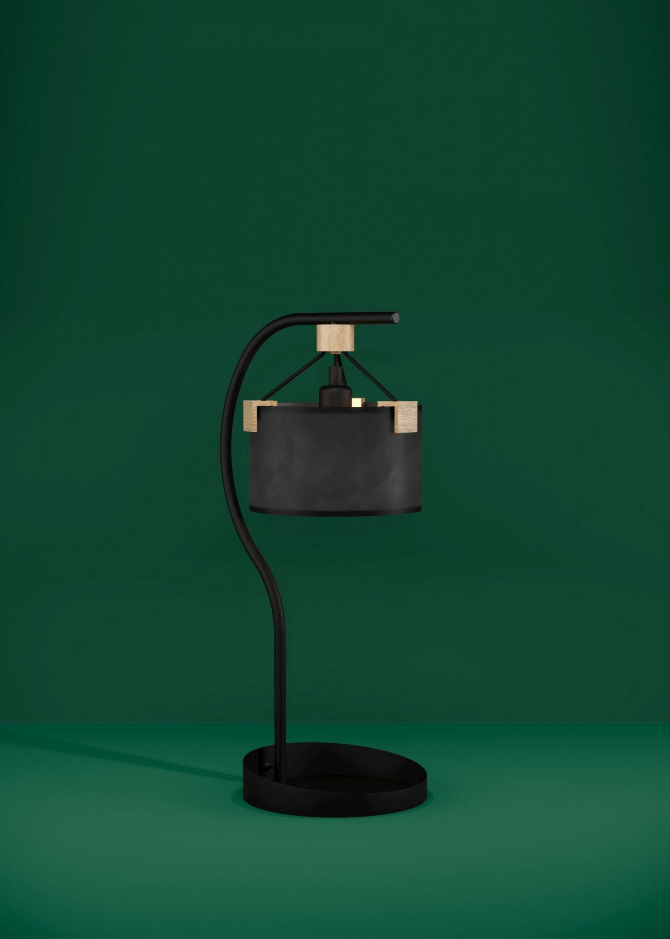 Stolní lampa POTOSI se vyznačuje elegantním černým kovovým podstavcem s jemným zakřivením a kulatým stínidlem vyrobeným z kraftového papíru v černé barvě. Tento stínidlo je umně doplněno třemi přírodními klipy z gumovníkového dřeva a černými bavlněnými provázky, které dodávají lampě sofistikovaný vzhled. Specifický design podstavce navíc umožňuje prostor pro osobní dekorace, což zvyšuje její flexibilitu a estetickou hodnotu.