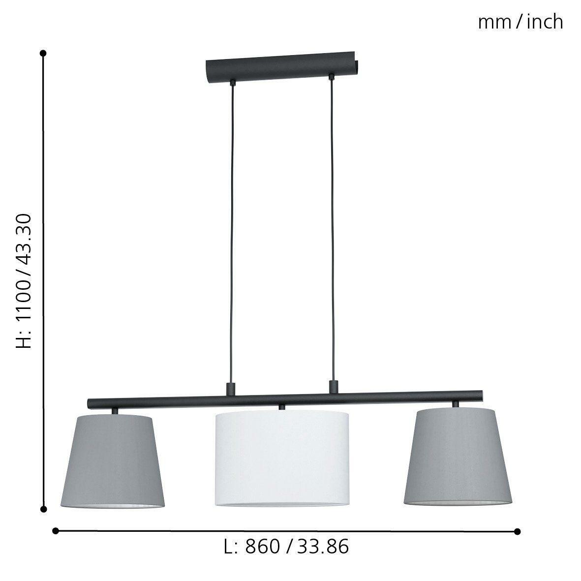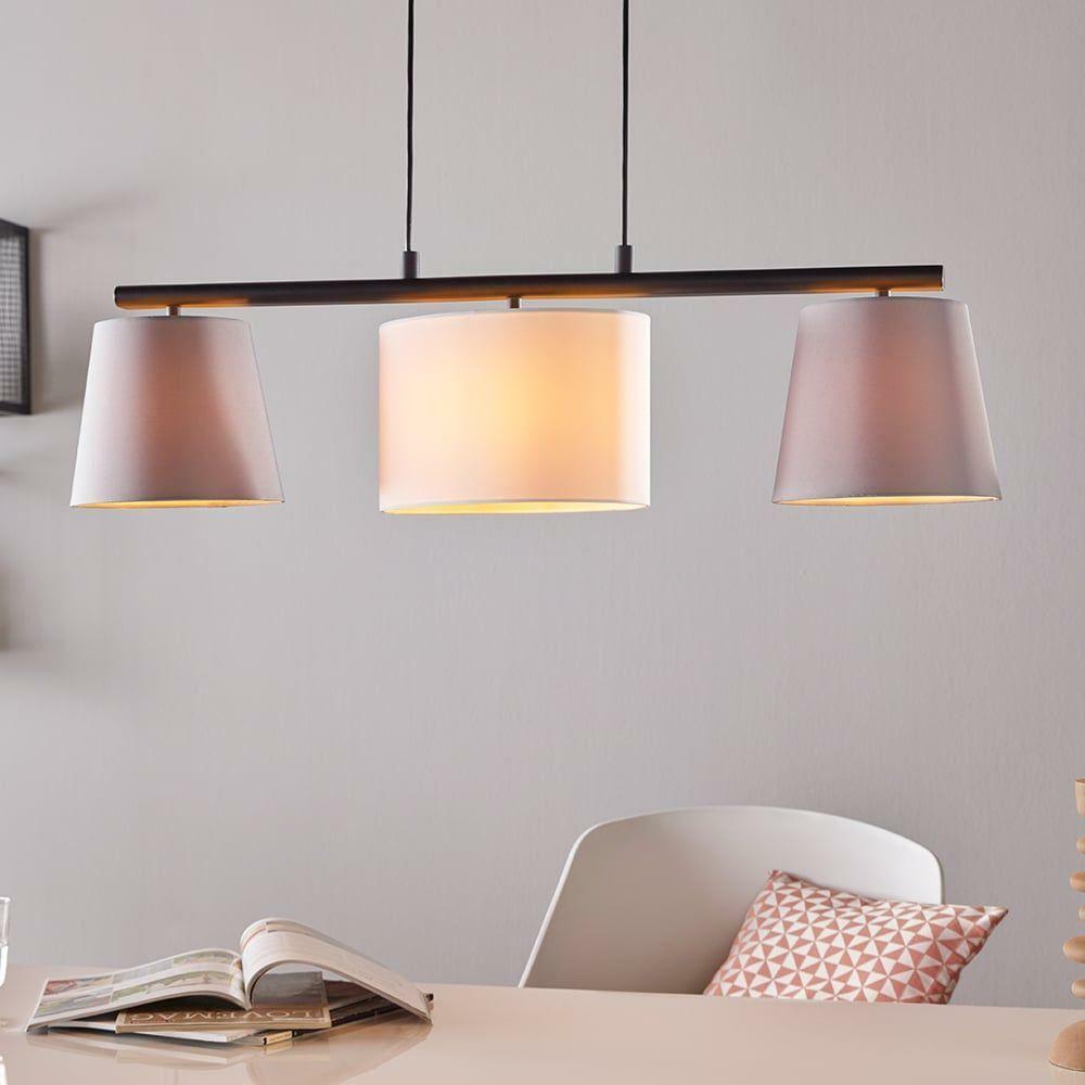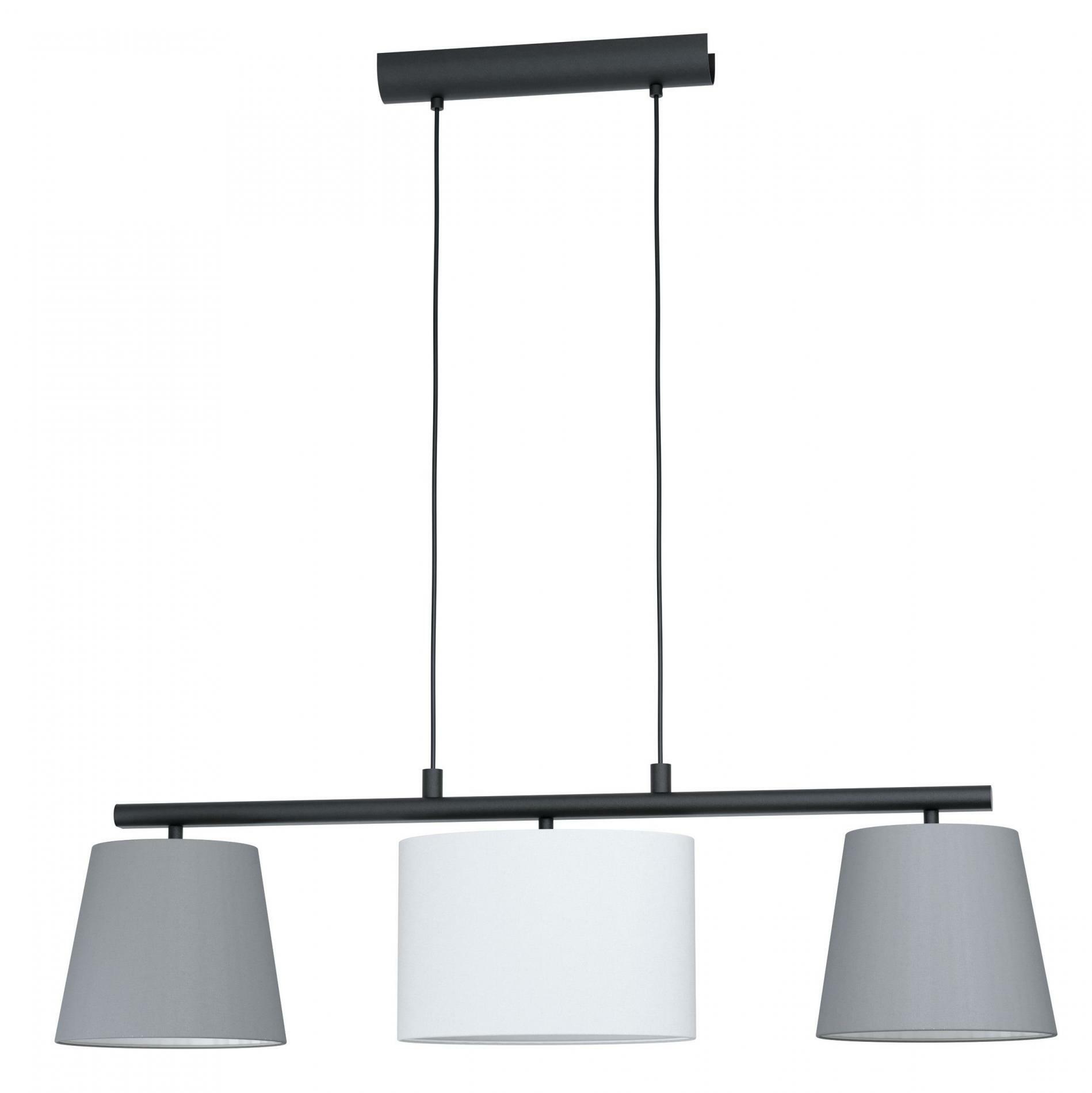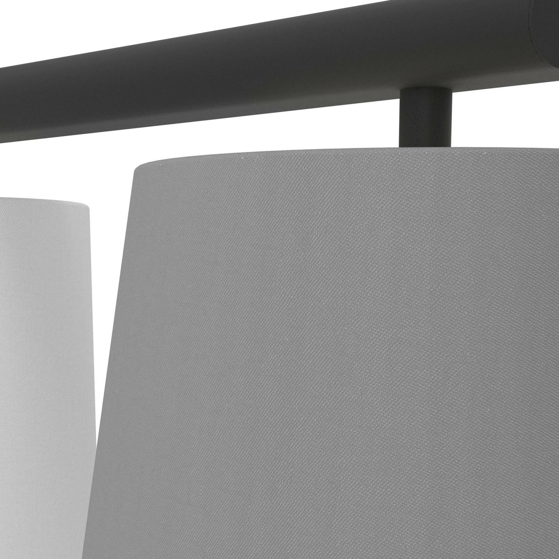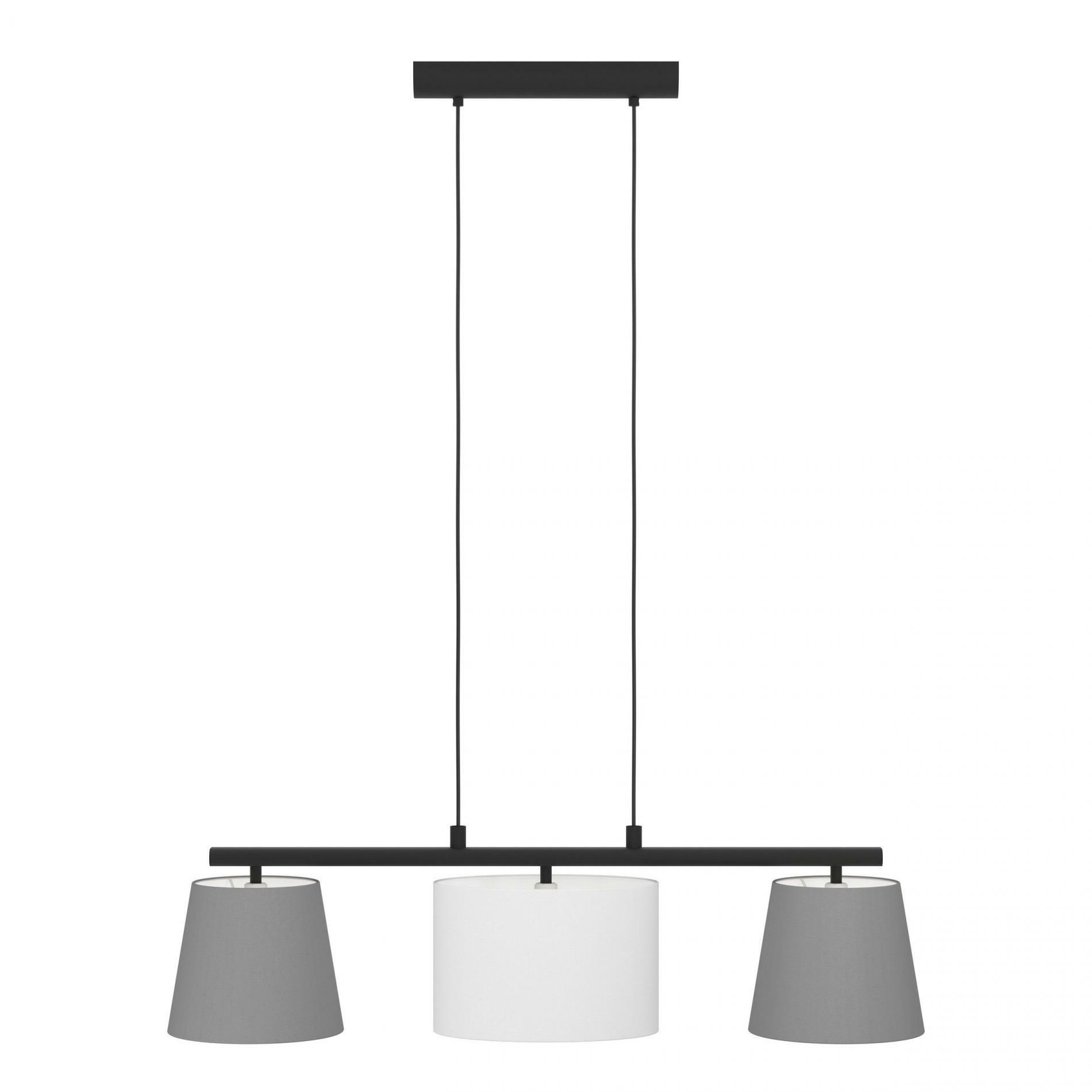 Závěsné svítidlo ALMEIDA 1 je vyrobeno s černým kovovým baldachýnem, ze kterého visí stejně barevný podlouhlý kovový držák se třemi textilními stínidly. Tato stínidla vytvářejí působivý a zároveň harmonický vzhled díky různorodým barvám v odstínech šedé a bílé, které jsou podpořeny kuželovitými a oválnými tvary lampových stínidel. Lampa s retro nádechem 60. let se hladce začlení do moderních interiérových stylů a poskytuje útulné osvětlení obývacího pokoje nebo jídelny, například nad podlouhlým jídelním stolem. Světelné zdroje nejsou součástí balení. Svítidlo je vhodné pro jakýkoli světelný zdroj s paticí E14.