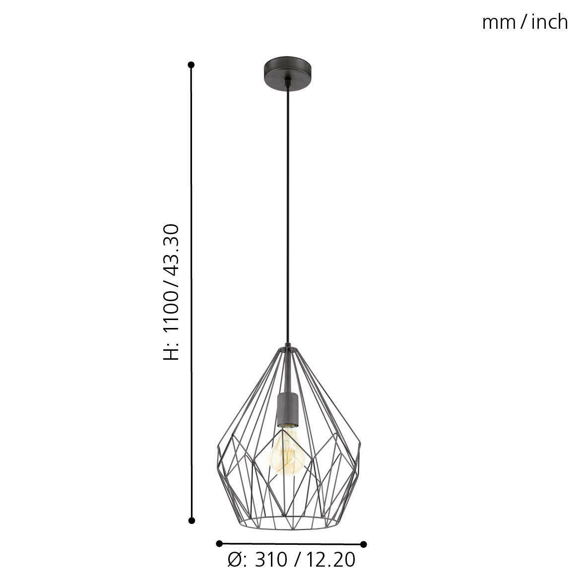 Závěsná lampa CARLTON je vyrobena z drátěného tělesa ve tvaru diamantu v elegantní černé barvě. Unikátní drátěné stínidlo vytváří fascinující hry světla a stínů, jakmile je svítidlo zapnuté. Tato závěsná lampa dokonale doplňuje interiéry v moderním vintage stylu a je vhodná do jakéhokoli prostoru – ať už v kuchyni, obývacím pokoji nebo nad jídelním stolem v jídelně. Zobrazená filamentová žárovka není součástí balení. Svítidlo je kompatibilní s jakoukoli žárovkou s paticí E27.