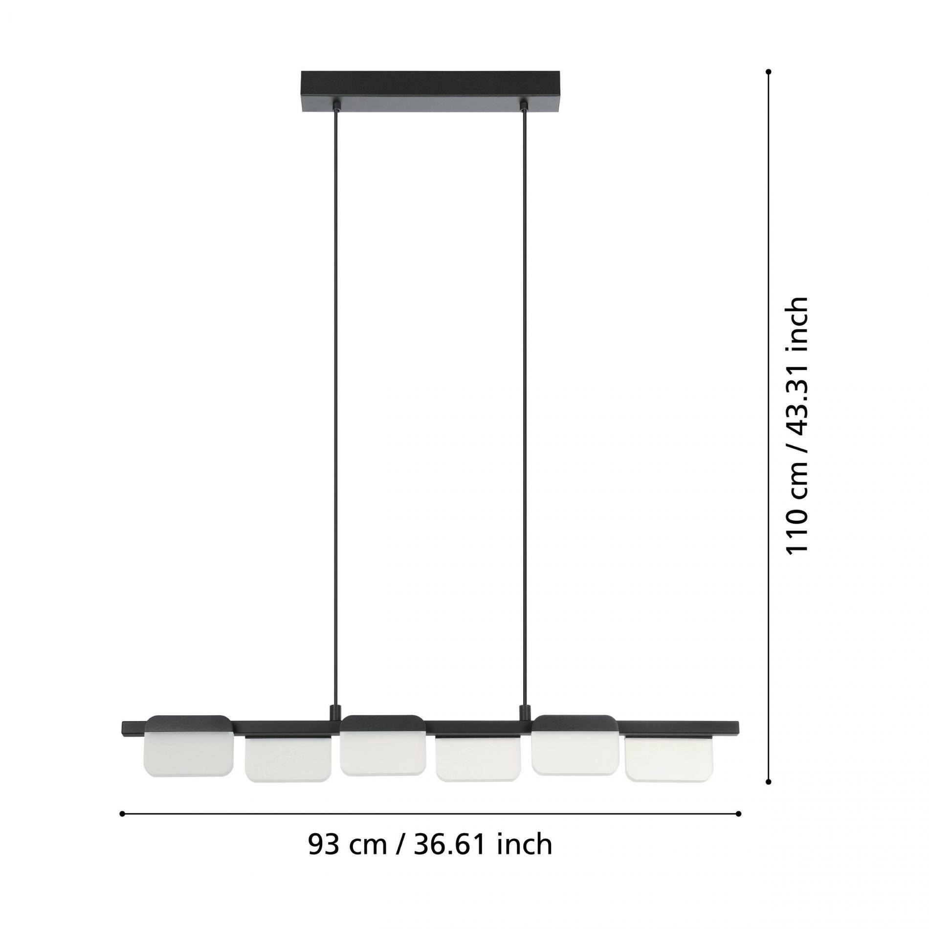 LED závěsné svítidlo ERVIDEL je vyrobeno s černým kovovým baldachýnem, ze kterého je zavěšena podlouhlá kovová konzola ve stejné barvě. Na této konzole je umístěno šest saténových akrylových světelných těles, která jsou rozmístěna střídavě. Integrované LED diody vyzařují příjemné teplé bílé světlo a lze je stmívat pomocí vhodného otočného stmívače na zdi.