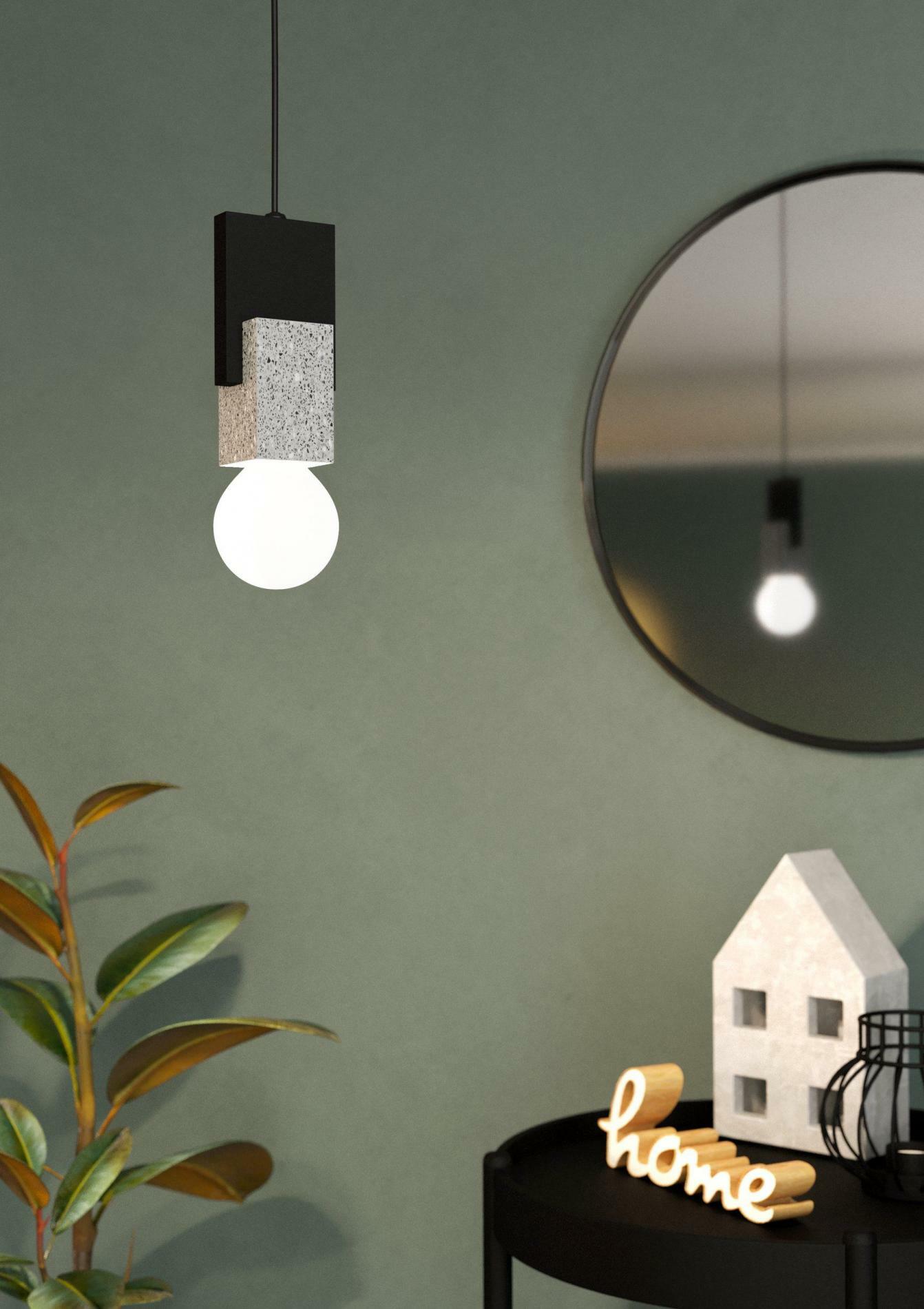 Závěsné svítidlo LOBATIA je vyrobeno s hranatou objímkou z šedobílého teraca, které je doplněno černým dřevěným prvkem. Tato kombinace je zavěšena na černém kovovém závěsu. Minimalistická závěsná lampa, která vyniká zajímavým materiálovým mixem kovu, dřeva a teraca, se dokonale hodí do moderních interiérů. Poskytuje stylové osvětlení pro váš prostor, ať už se jedná o obývací pokoj, nebo jídelnu nad jídelním stolem. Upozorňujeme, že zobrazené světelné zdroje nejsou součástí dodávky. Svítidlo je vhodné pro jakýkoliv světelný zdroj s objímkou E27.