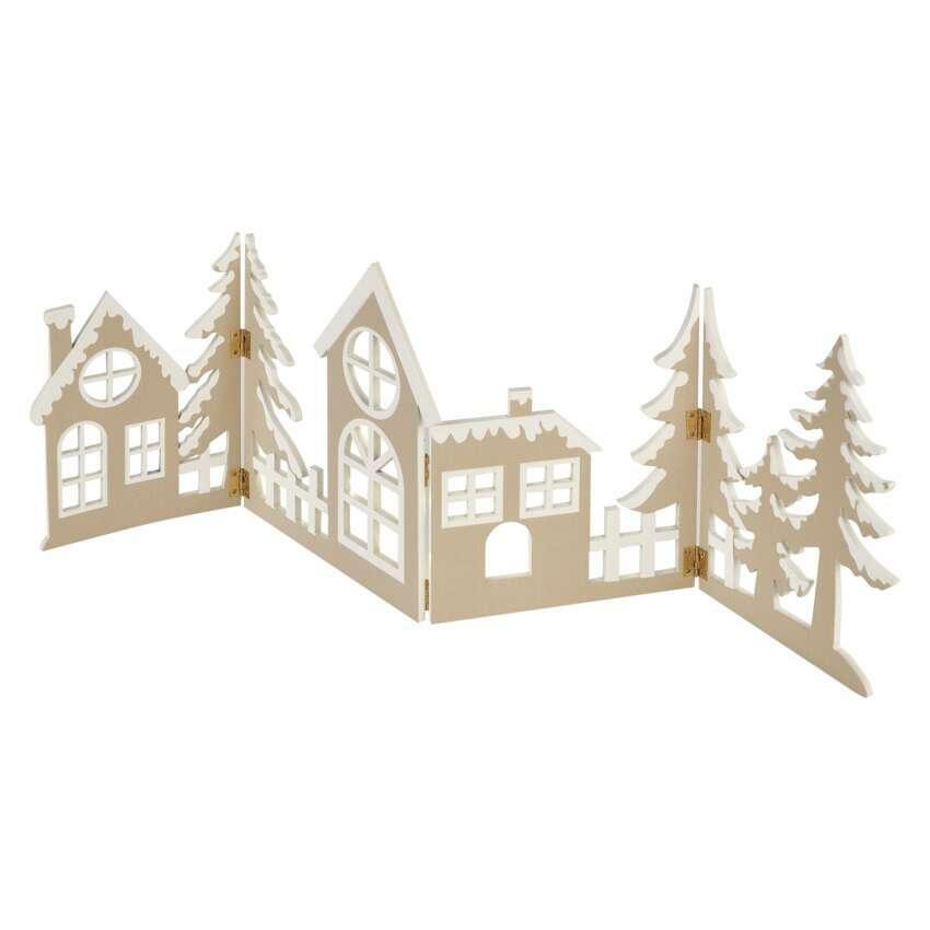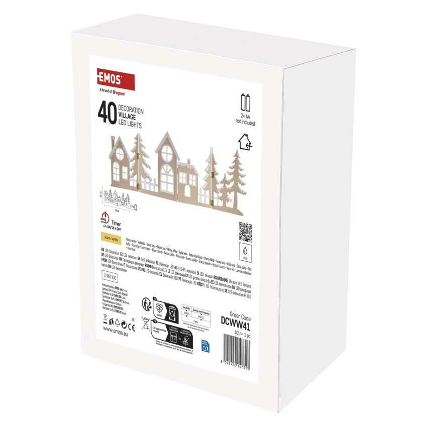 EMOS LED dekorace dřevěná - vesnička, 60 cm, 2x AA, teplá bílá, časovač DCWW41