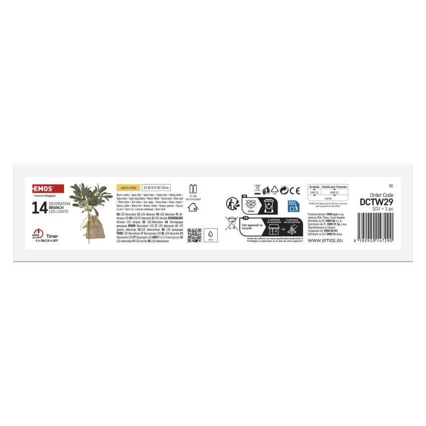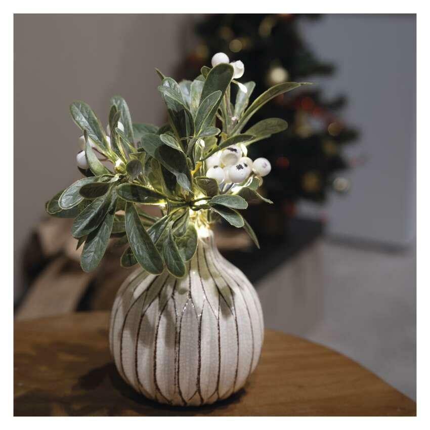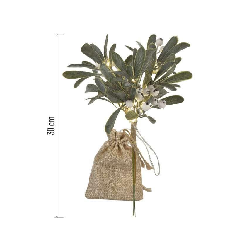 EMOS LED dekorace – větvička jmelí, teplá bílá, časovač