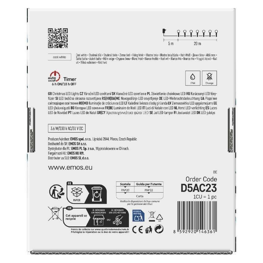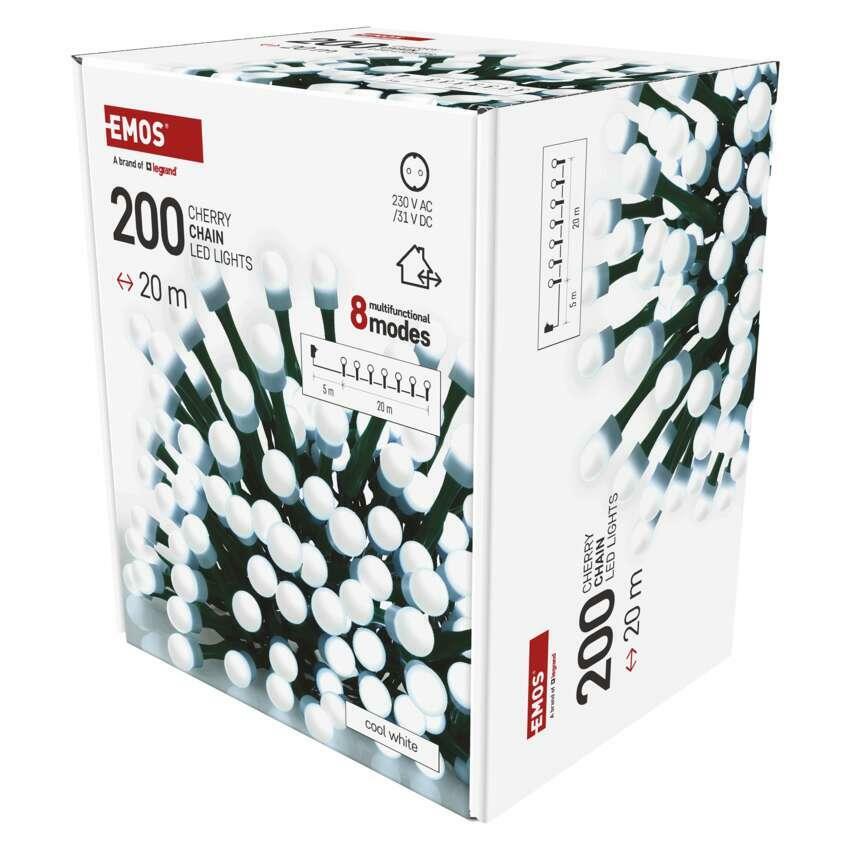Objevte univerzální a energeticky úsporné řešení pro vánoční osvětlení – EMOS LED vánoční cherry řetěz s kuličkami v délce 20 metrů. Tento světelný řetěz vyniká moderním designem kuliček, studeně bílým světlem a špičkovou odolností. Je ideální pro ozdobení vánočních stromků do výšky 210 cm, ale i pro výzdobu balkónů, pergol, oken či vnitřních prostor.