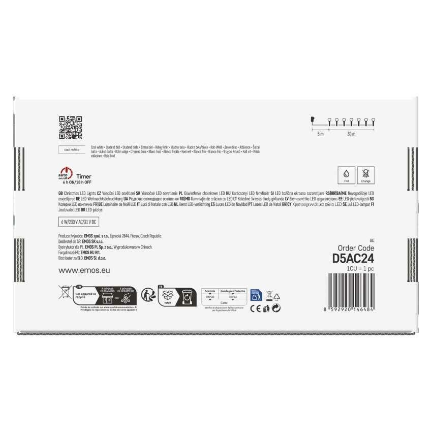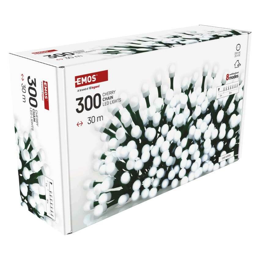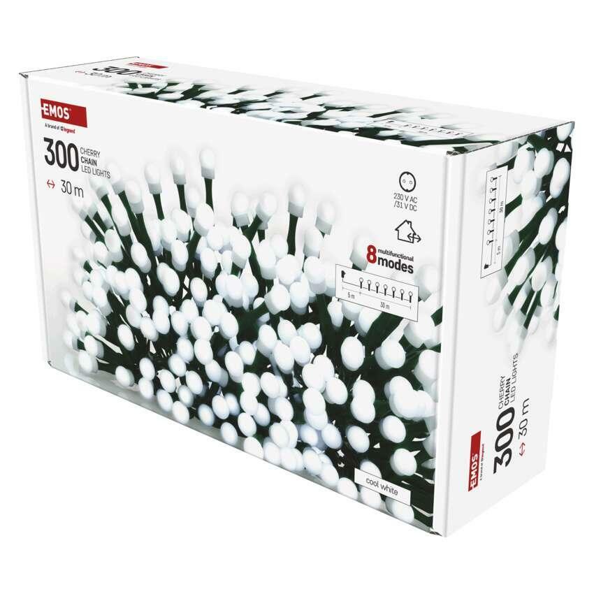 LED řetěz EMOS Cherry je dokonalou volbou pro vánoční výzdobu vašeho domova či zahrady. Díky 300 LED diodám ve tvaru kuliček a délce 30 metrů spolehlivě rozzáří stromy až do výšky 2,5 m, pergoly, zábradlí nebo interiér. Studeně bílá barva světla vytváří čistý a moderní dojem, který podtrhne sváteční atmosféru.
