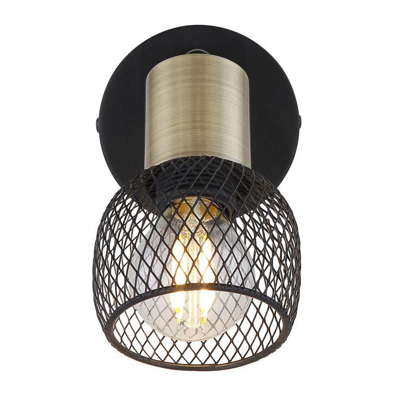 Nástěnné svítidlo, kov černý, mosaz, stínítko - kovová mřížka, vypínač, ŠxV: 80x165, H: 90, bez žárovky 1xE14, max. 40W 230V