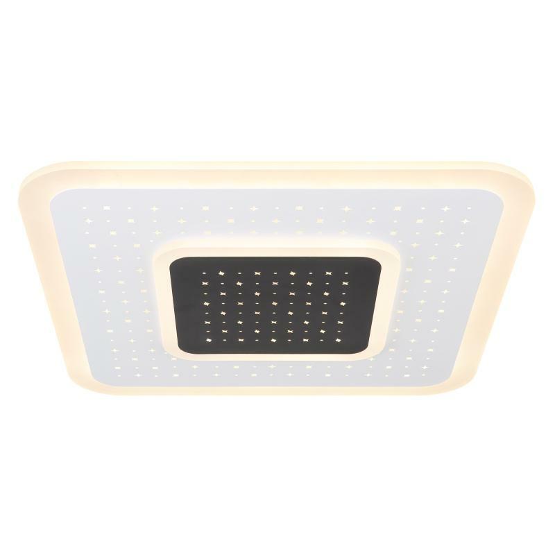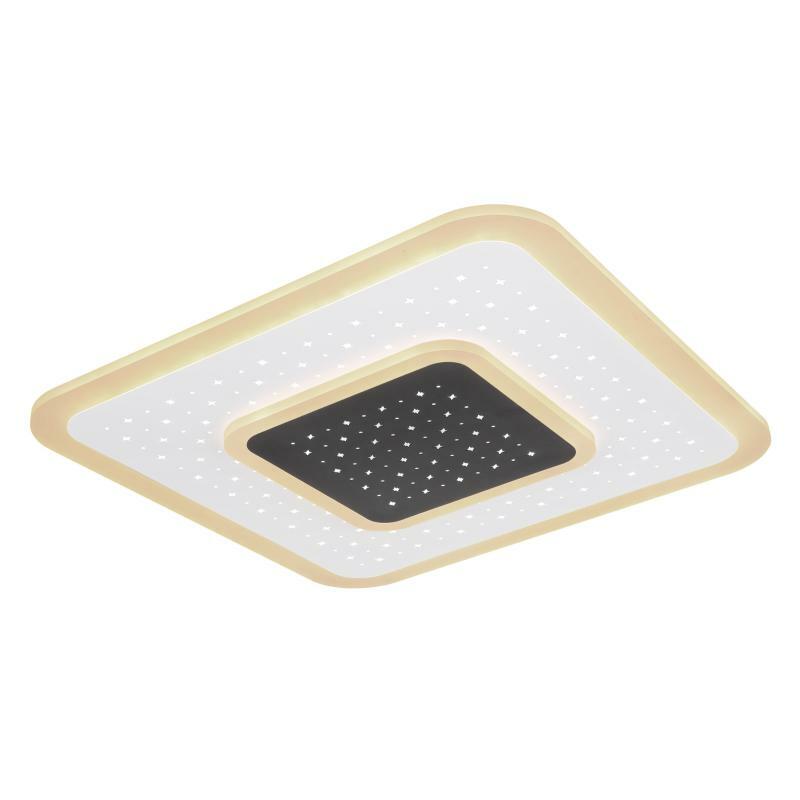 Stropní svítidlo, kov bílý, černý, akryl opál, stmívatelné, vícekrokové ovládání přes nástěnný vypínač, fixace barvy, paměť, noční světlo, dál. ovládání, vč. baterií 2x AAA, DxŠxV: 46x46x6cm, LED 47W 230V, 185-2175lm výstup, 2700-6000K