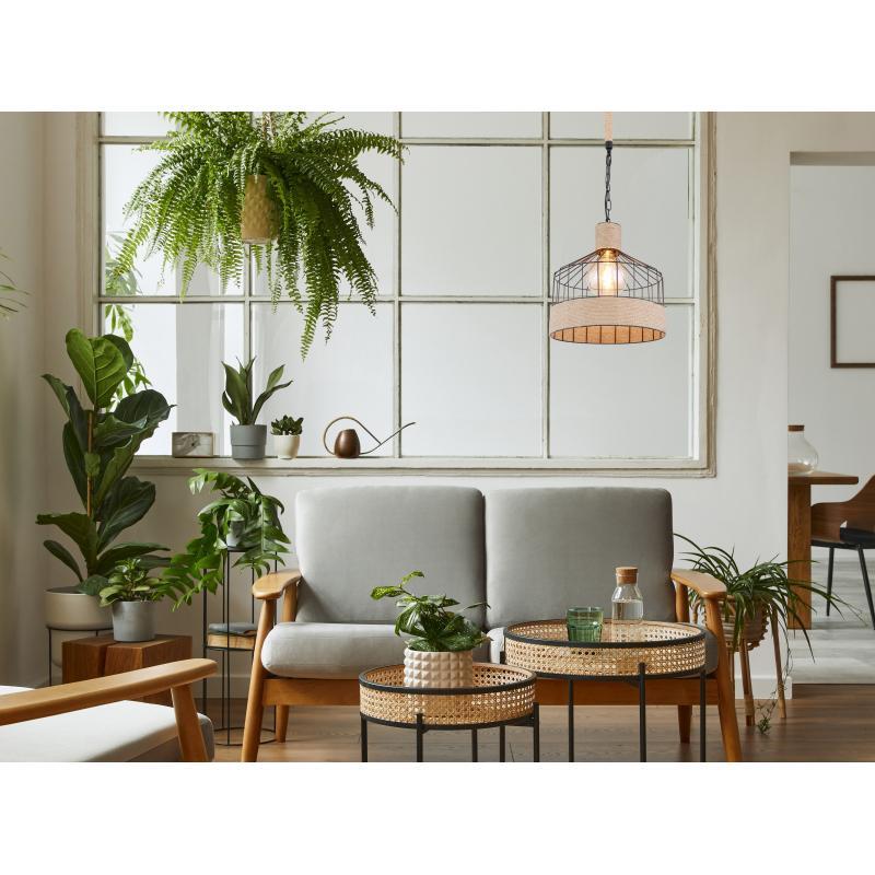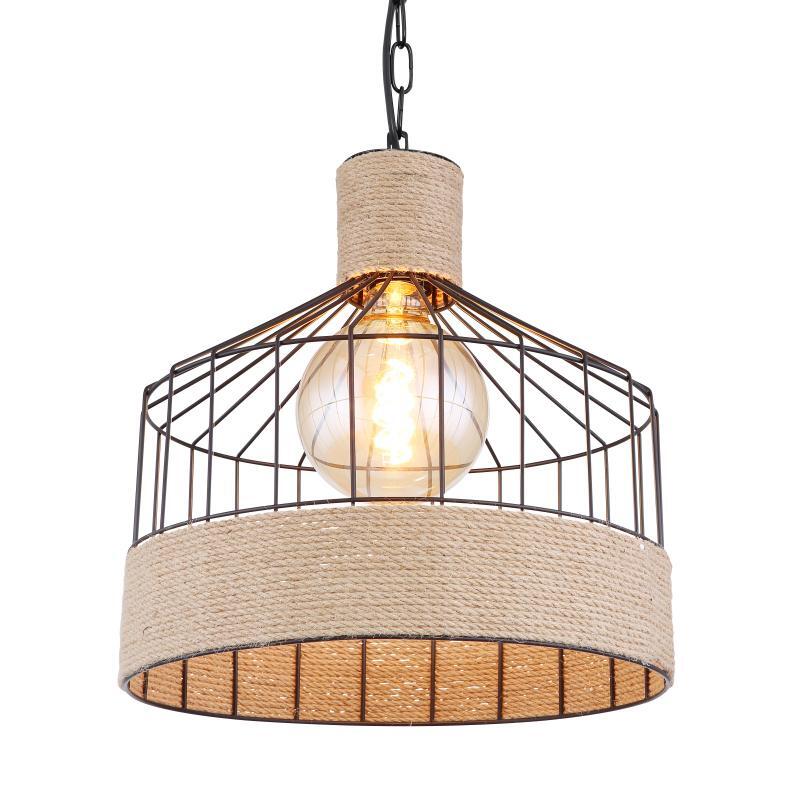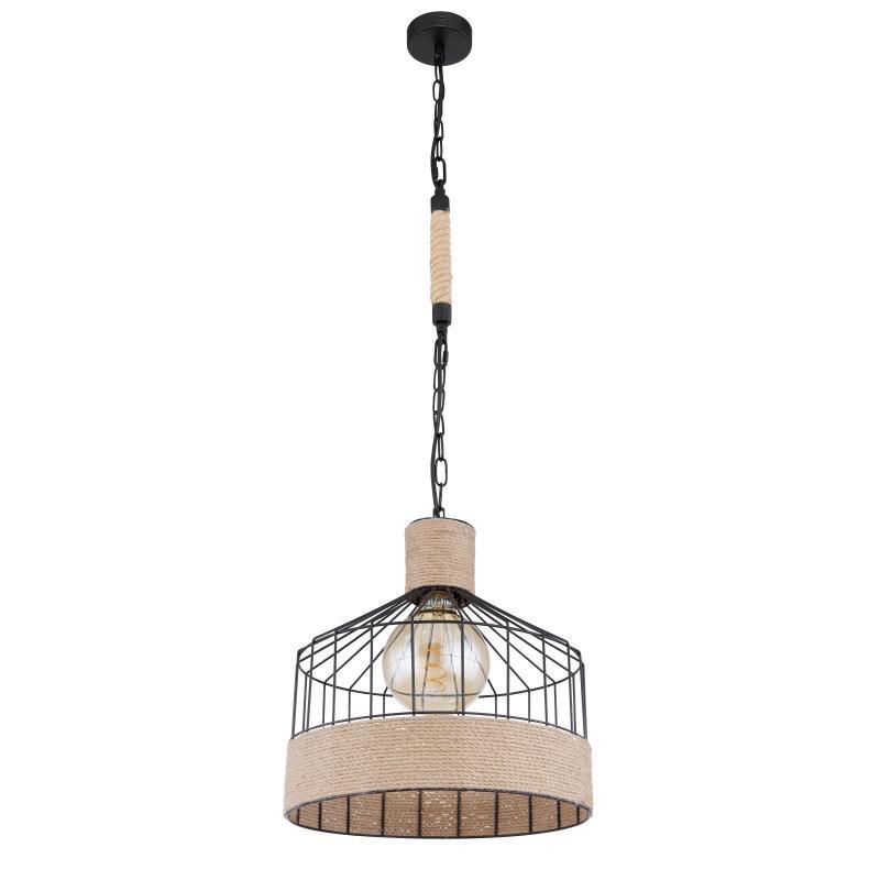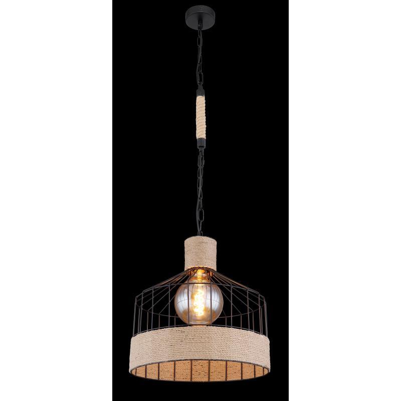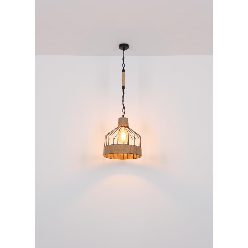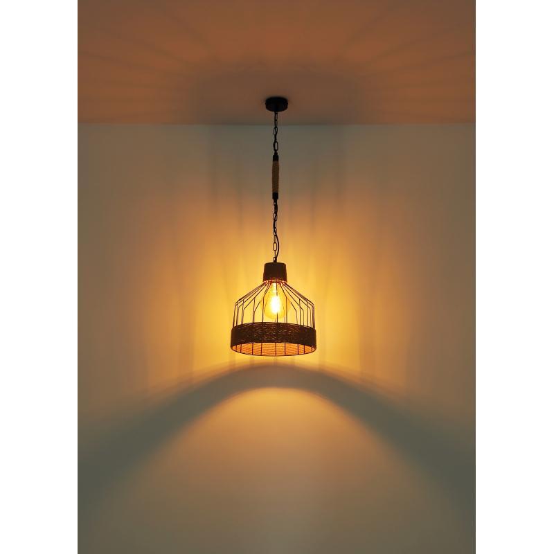 Závěsné svítidlo, kov černý matný, konopné lano hnědé, černý řetěz, Ø350, V: 1350, bez žárovky 1xE27, max. 60W 230V