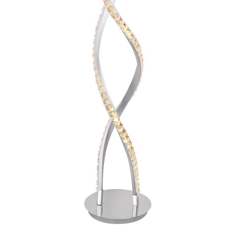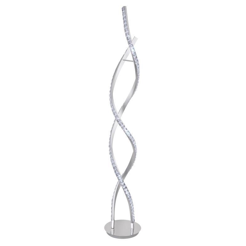 Stojací svítidlo ze série Pill zaujme svým vzhledem. Svítidlo je vyrobeno z chromu, hliníku a průhledných křišťálů K5. Barvu lze měnit a fixovat pomocí dálkového ovladače. Svítidlo se dvěma zkroucenými rameny má výšku 116cm a je stmívatelné. 24W LED zdroj svítí intenzitou 1000 lumenů s teplotou světla 3000 Kelvinů. Integrovaný 12W LED RGB zdroj svítí různými RGB barvami.